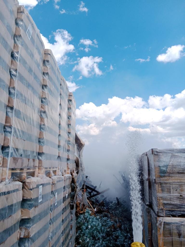 Po dojeździe na miejsce pierwszych zastępów zastano pożar o wymiarach 20m x 10m. Ogniem objęte były palety z półproduktami do produkcji zniczy. Brak osób poszkodowanych.