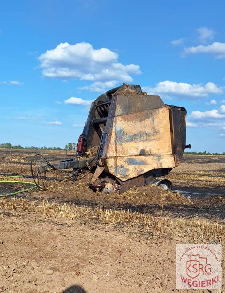23 lipca br. Dyżurny Stanowiska Kierowania KP PSP we Wrześni przyjął zgłoszenie dotyczące pożaru zboża na pniu w miejscowości Wódki (gmina Września). Po przybyciu na miejsce strażacy zastali pożar ścierniska, balotów słomy, prasy rolniczej oraz zboża na pniu. Działania polegały na zabezpieczeniu miejsca zdarzenia oraz podaniu siedmiu prądów wody w natarciu na palące się ściernisko, baloty słomy, zboże oraz prasę. Obecni na miejscu rolnicy oborali pole agregatami talerzowymi w celu ograniczenia rozprzestrzeniania się pożaru. Spaleniu uległo: 10 ha zboża na pniu (pszenicy), prasa rolnicza, 15 balotów słomy, 1 ha ścierniska.