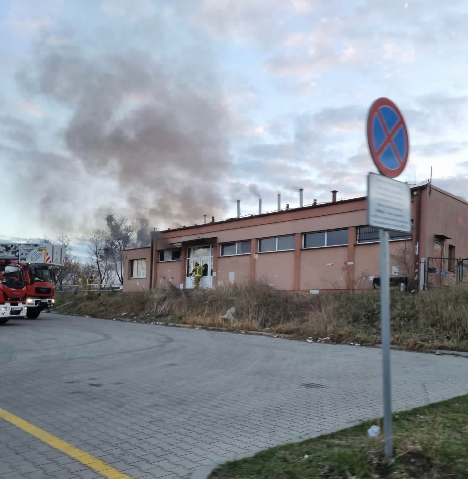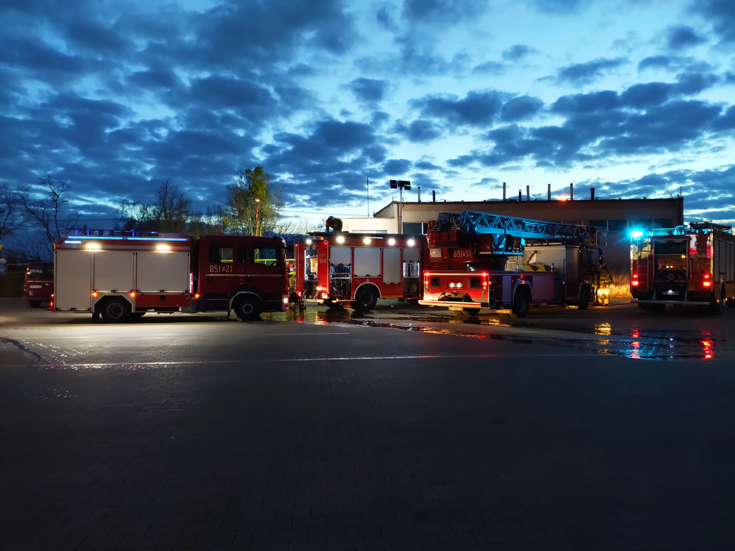 Po przybyciu na miejsce zdarzenia pierwszego zastępu zastano zadymienie oraz wydobywające się na zewnątrz płomienie w starym budynku dworca PKS (pustostan).