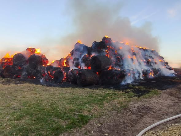 Po dojeździe na miejsce pożaru zastano stóg o wymiarach 25m x 10m x 5m w całości objęty ogniem.