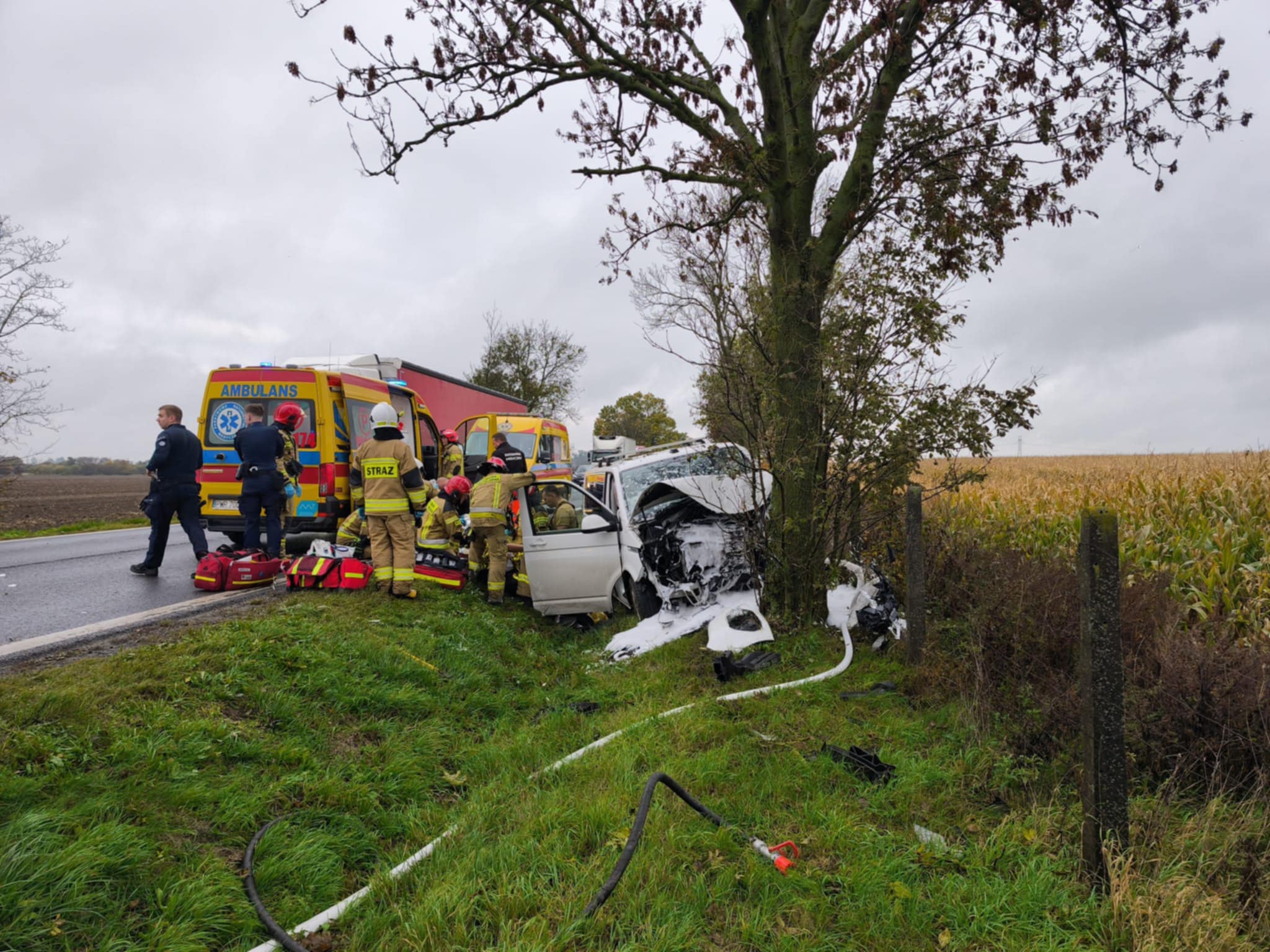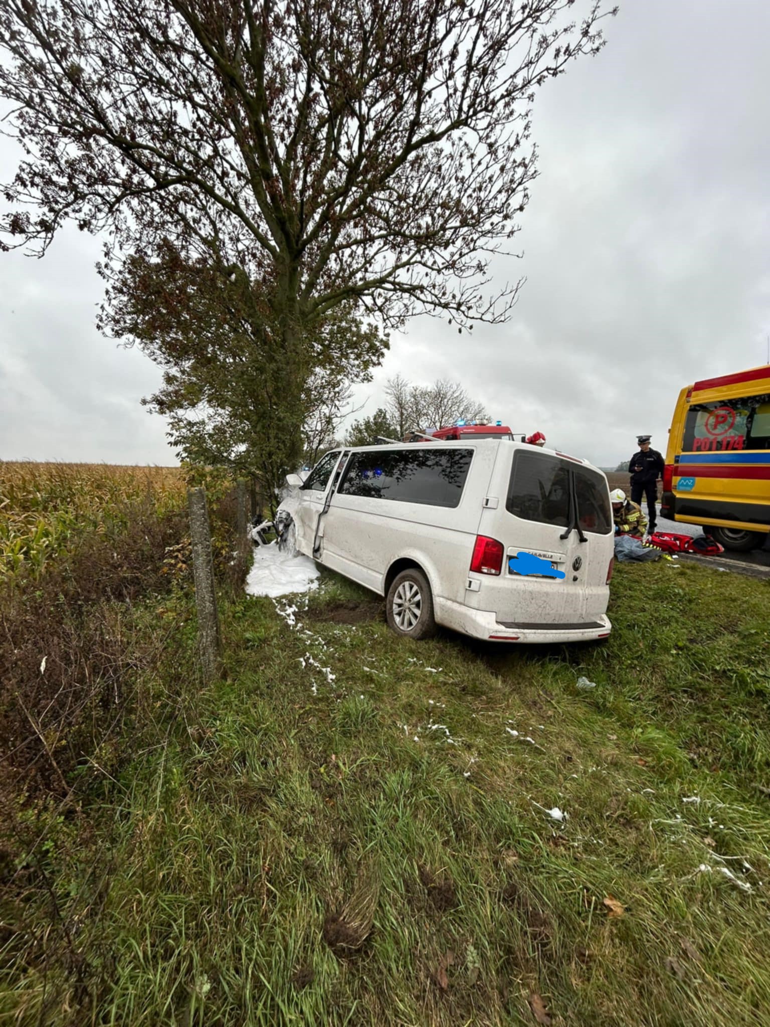 Ratownicy po dotarciu na miejsce zastali busa po uderzeniu w drzewo. Pojazdem podróżowało pięć osób (dwóch dorosłych i trójka dzieci). Na miejscu zdarzenia obecna karetka Zespołu Ratownictwa Medycznego. Droga Krajowa 15 całkowicie zablokowana.