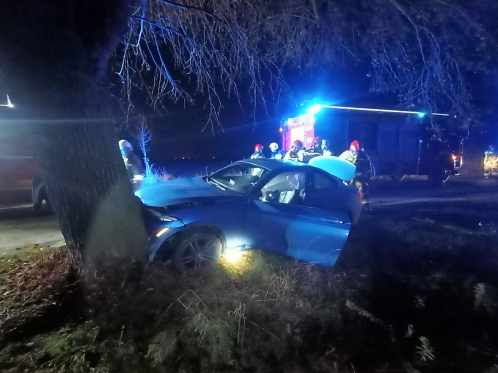 Po przybyciu na miejsce pierwszego zastępu zastano samochód osobowy mrki BMW po uderzeniu w drzewo. Samochodem podróżowała jedna osoba, która znajdowała się poza pojazdem. Droga w całości zablokowana.