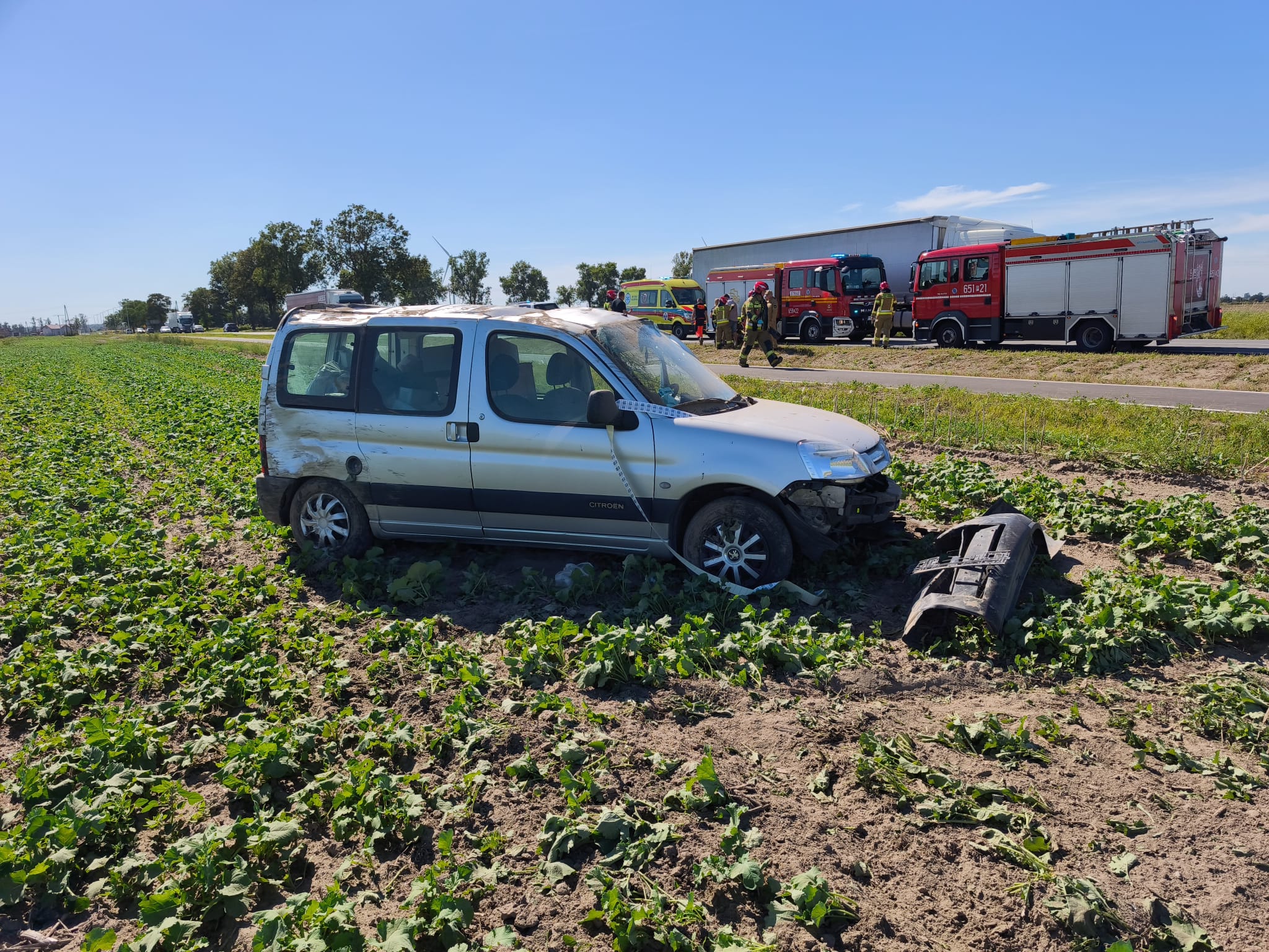 Na miejsce zdarzenia zadysponowano zastępy z Jednostki Ratowniczo-Gaśniczej we Wrześni oraz Ochotniczej Straży Pożarnej w Miłosławiu. Po przybyciu służb ratunkowych stwierdzono, że samochód osobowy dachował i zatrzymał się na polu.