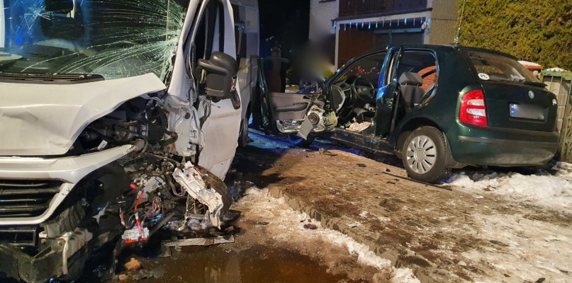 Po dojeździe na miejsce wypadku zastano dwa samochody (Fiat Ducato, Skoda Fabia) po zderzeniu. Skoda Fabia znajdowała się na chodniku, natomiast Fiat Ducato na jezdni. Osoby podróżujące Fiatem Ducato (6 osób) znajdowały się poza pojazdem, nie wymagały udzielenia kpp. Kierowca Skody uwięziony był w pojeździe.