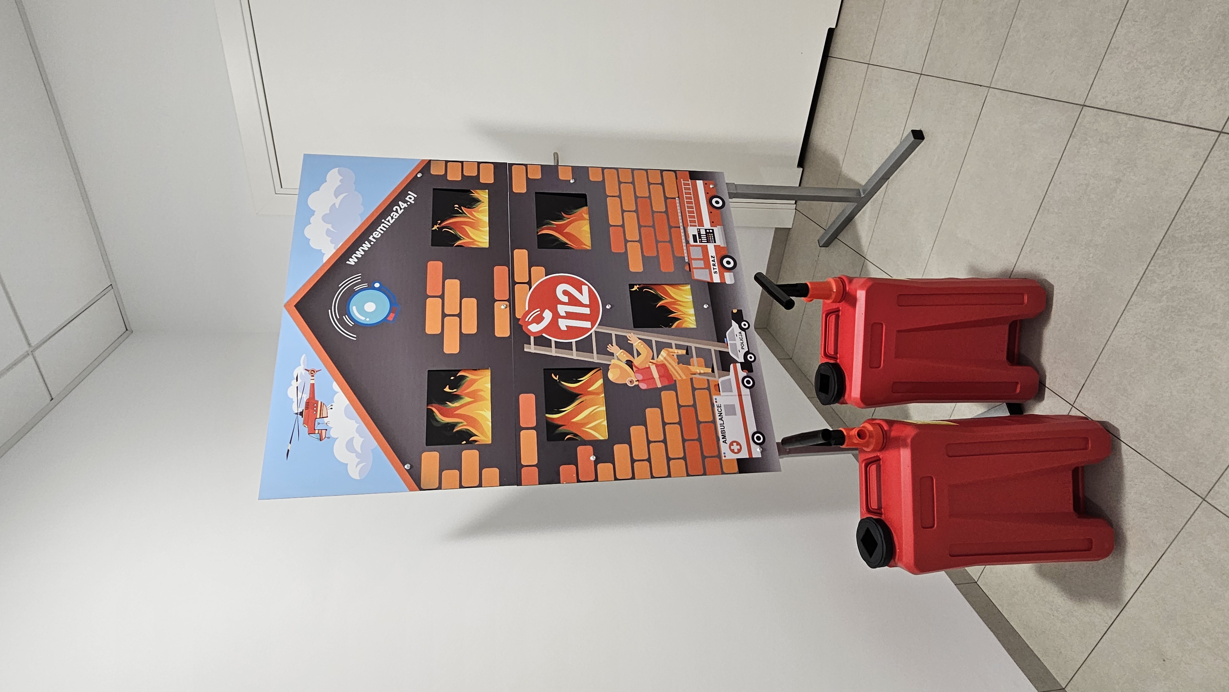 W ramach w/w zadania dokonano zakupu: interaktywnego symulatora instalacji fotowoltaicznej oraz chmury burzowej, modułu hulajnogi elektrycznej obrazujące zagrożenia wynikające z jej użytkowania, makiety treningowej – domek strażacki wraz z 2 hydronetkami, hełmów strażackich dziecięcych wraz z ubraniami specjalnymi dla dzieci, oznakowania informacyjnego ewakuacyjnego oraz z zakresu ppoż., dokonano modyfikacji modułu ogniska poprzez dodanie efektu zadymienia, stworzono moduł ekologiczny dot. ratowania zwierząt na wysokości, stworzono scenkę obrazującą zagrożenie pożaru od zapalonej świecy.