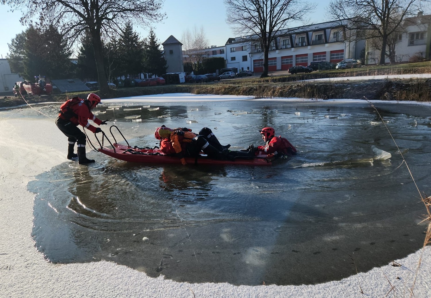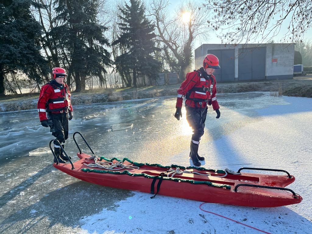 W dniach 8-10 stycznia 2024 roku funkcjonariusze zmian służbowych z Jednostki Ratowniczo – Gaśniczej we Wschowie, w ramach doskonalenia zawodowego przeprowadzili ćwiczenia z zakresu ratownictwa lodowego na zbiorniku wodnym znajdującym się na terenie Komendy Powiatowej PSP we Wschowie.