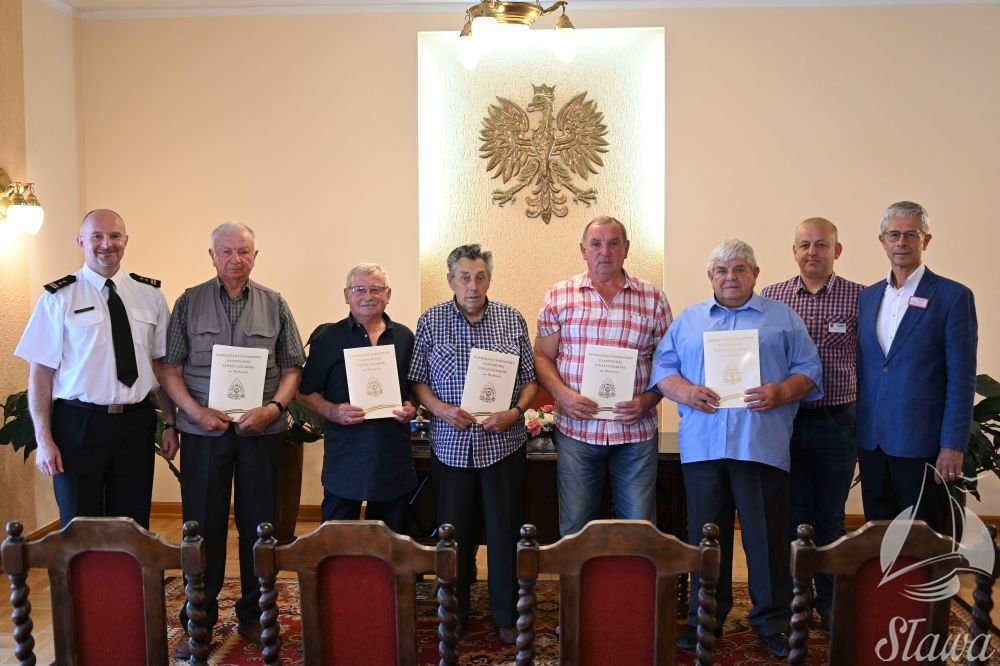 Podczas wręczania decyzji bryg. Krzysztof Piasecki – Komendant Powiatowy Państwowej Straży Pożarnej we Wschowie oraz Pan Krzysztof Gruszewski – Zastępca Burmistrza Sławy i Pani Jolanta Wielgus – Burmistrz Miasta i Gminy Szlichtyngowa podziękowali druhom za długoletnią służbę na rzecz lokalnej społeczności, za zaangażowanie w rozwój ochrony przeciwpożarowej życząc przede wszystkim dużo zdrowia oraz radości w życiu.