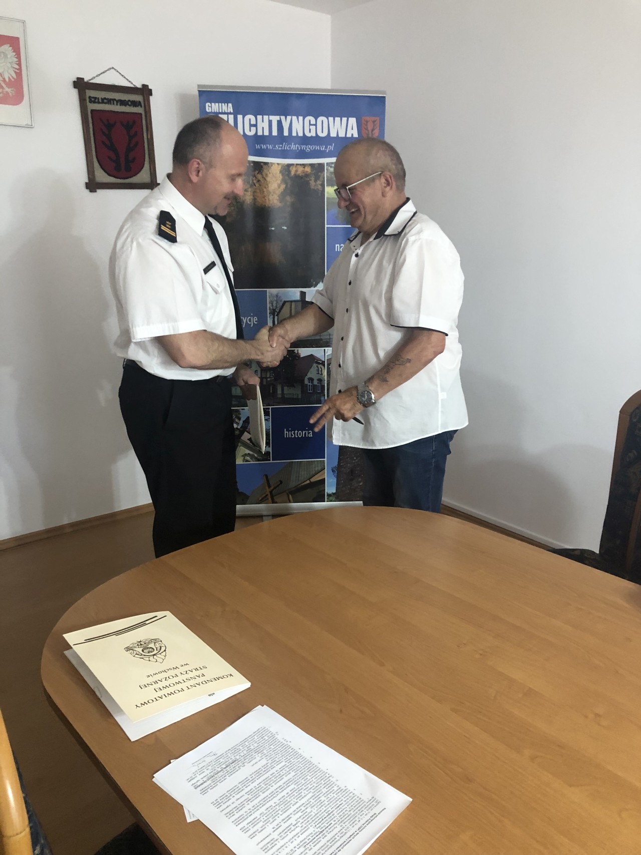 W tym samym dniu w Urzędzie Miasta i Gminy Szlichtyngowa odbyła się również uroczystość wręczenia Decyzji o przyznaniu świadczenia ratowniczego dla strażaków ratowników Ochotniczych Straży Pożarnych z terenu gminy Szlichtyngowa. Decyzje o przyznaniu świadczenia ratowniczego dla strażaków ratowników z terenu gminy Szlichtyngowa zostały wręczone przez bryg. Krzysztofa Piaseckiego – Komendanta Powiatowego Państwowej Straży Pożarnej we Wschowie oraz Panią Jolantę Wielgus – Burmistrz Miasta i Gminy Szlichtyngowa. Decyzje o przyznaniu świadczenia ratowniczego odebrał jeden druh z jednostki OSP Gola oraz jeden druh z jednostki OSP Jędrzychowice.
