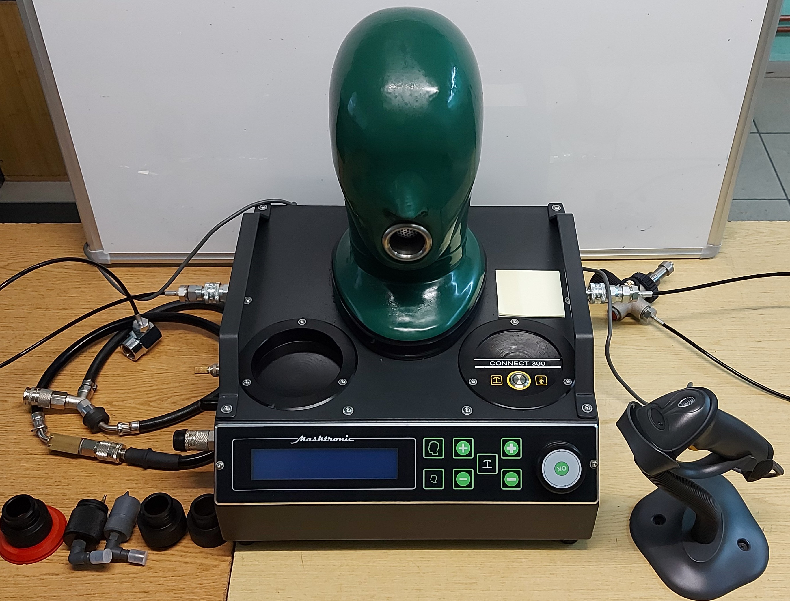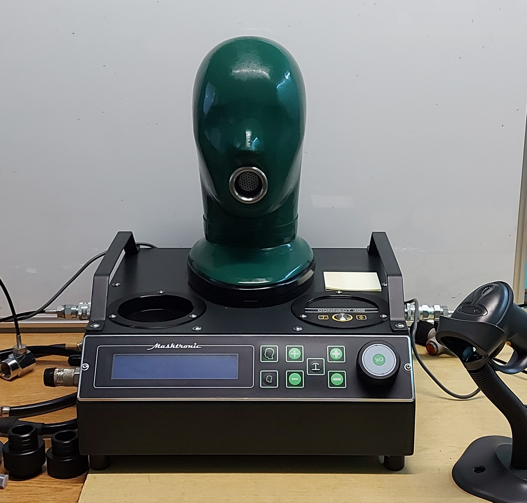 Modułowe urządzenie kontrolne serii Connect 300 to ultranowoczesny sprzęt dedykowany do każdej wielkości warsztatu jak również jako rozwiązanie mobilne. Kompaktowa, wyjątkowo ergonomiczna konstrukcja umożliwia w pełni automatyczne przeprowadzenie badania szczelności masek, aparatów powietrznych, automatów oddechowych oraz ubrań gazoszczelnych w zakresie niskiego średniego jak i wysokiego ciśnienia. Zastosowanie budowy modułowej stwarza szerokie możliwości konfiguracji urządzenia zgodnie z preferencjami użytkownika. Zintegrowany układ wysokiego ciśnienia pozwala na wykonanie dodatkowych testów takich jak: - porównanie wskazań manometru - pełny test sygnału akustycznego - pełny test układu wysokiego ciśnienia aparatu powietrznego