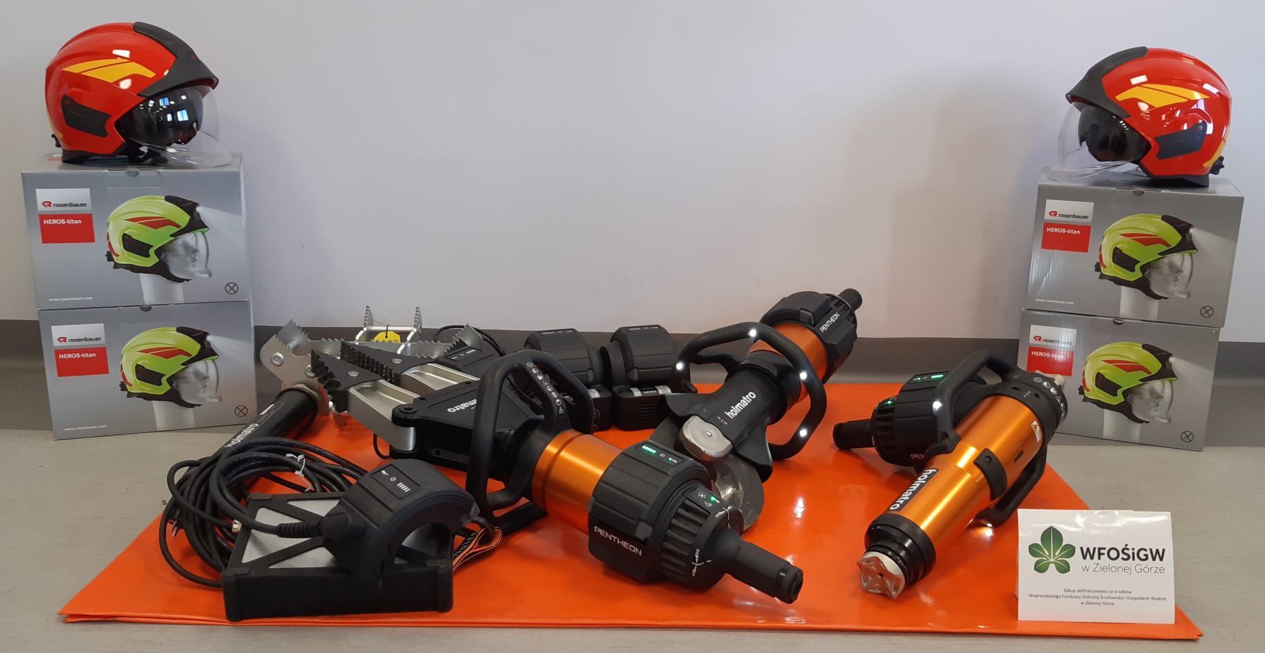 Zakupiony został zestaw najnowszej generacji elektrycznych narzędzi hydraulicznych akumulatorowych HOLMATRO PENTHEON w skład, którego wchodzą: rozpieracz ramieniowy, nożyce hydrauliczne, rozpieracz teleskopowy, przedłużka do rozpieracza teleskopowego, zestaw wsporników krzyżowych oraz niezbędny osprzęt. Zakupiono również bardzo wysokiej jakości 39 szt. hełmów bojowych ROSENBAUER HEROS Titan posiadających na wyposażeniu wbudowane latarki oraz przesłonę przeciwsłoneczną.