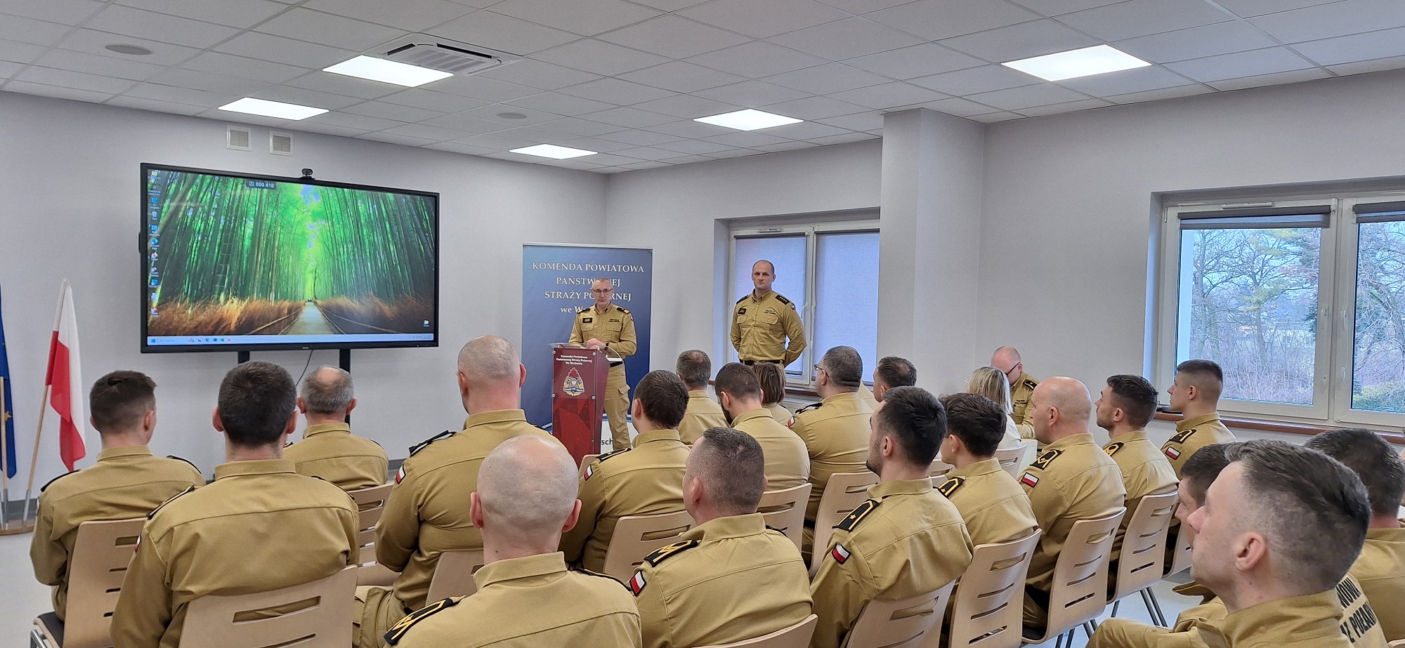 Na początku narady st.kpt. Piotr Tyczyński – p.o. Komendanta Powiatowego PSP we Wschowie powitał Lubuskiego Komendanta Wojewódzkiego PSP oraz funkcjonariuszy i pracowników cywilnych Komendy Powiatowej PSP we Wschowie.