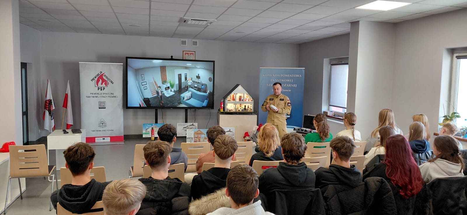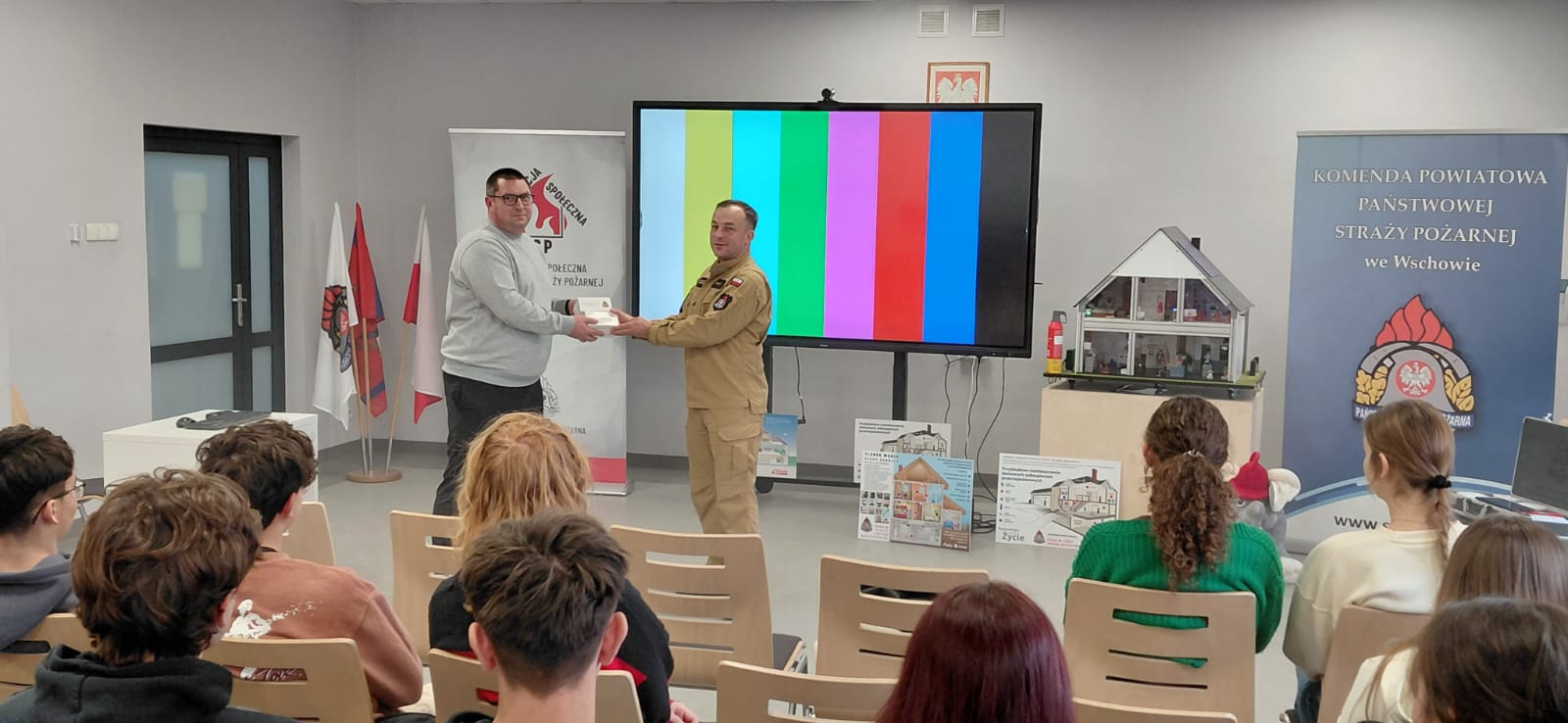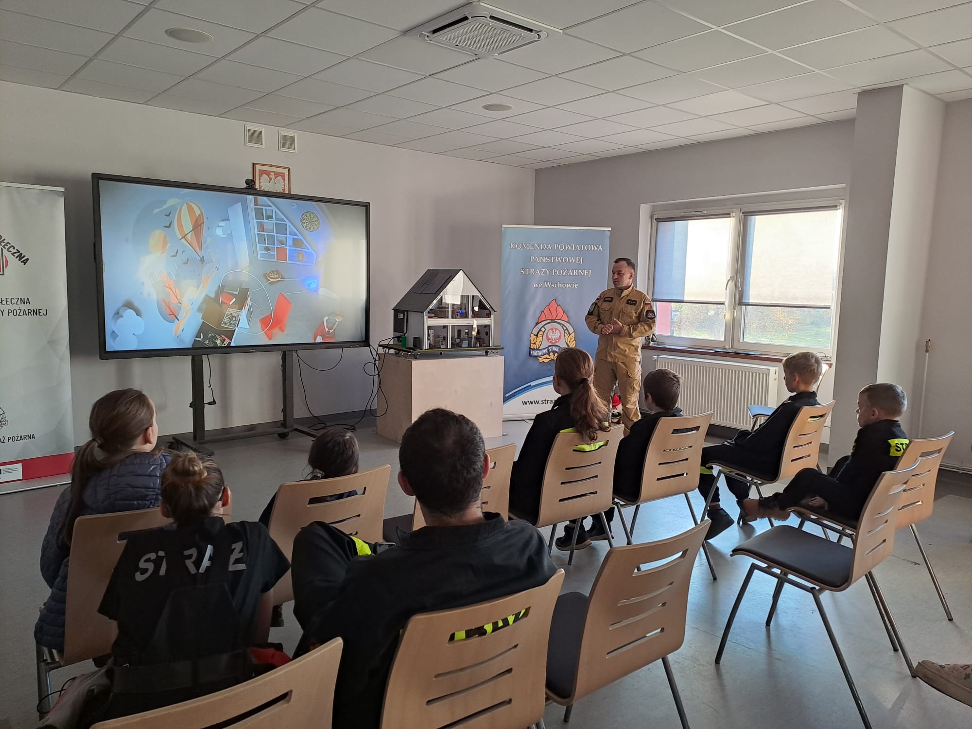 Kierownictwo Komendy Powiatowej Państwowej Straży Pożarnej składa serdecznie podziękowania dla Pana Mirosława Glaz – Prezesa Zarządu WFOŚiGW w Zielonej Górze oraz Pani Joanny Ejsmont – Kierownik Wydziału Organizacji i Funduszy Zewnętrznych WFOŚiGW w Zielonej Górze, dla Pana Waldemara Starosta – Starosty Wschowskiego i Pani Iwony Blask – Naczelnik Wydziału Inwestycji i Rozwoju Starostwa Powiatowego we Wschowie oraz dla Wszystkich partnerów i uczestników projektu za wspólną pracę na rzecz bezpieczeństwa mieszkańców powiatu wschowskiego. Jednocześnie Kierownictwo tutejszej Komendy informuje, że Symulator Zagrożeń Pożarowych i Edukacji Ekologicznej jest w chwili obecnej wykorzystywany do prowadzenia zajęć w ramach kampanii informacyjno-edukacyjnej pod nazwą „Czujka na straży Twojego bezpieczeństwa”.