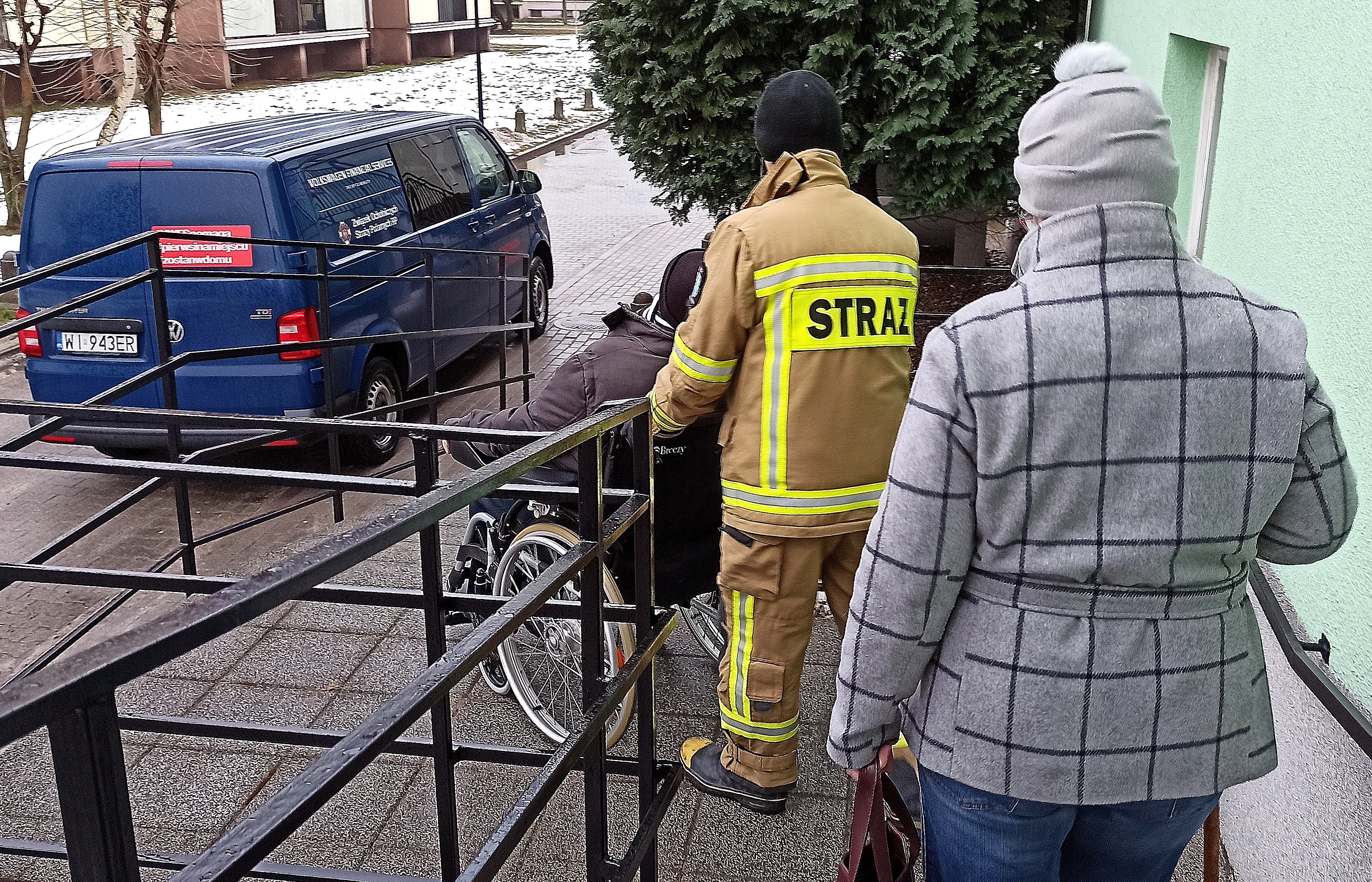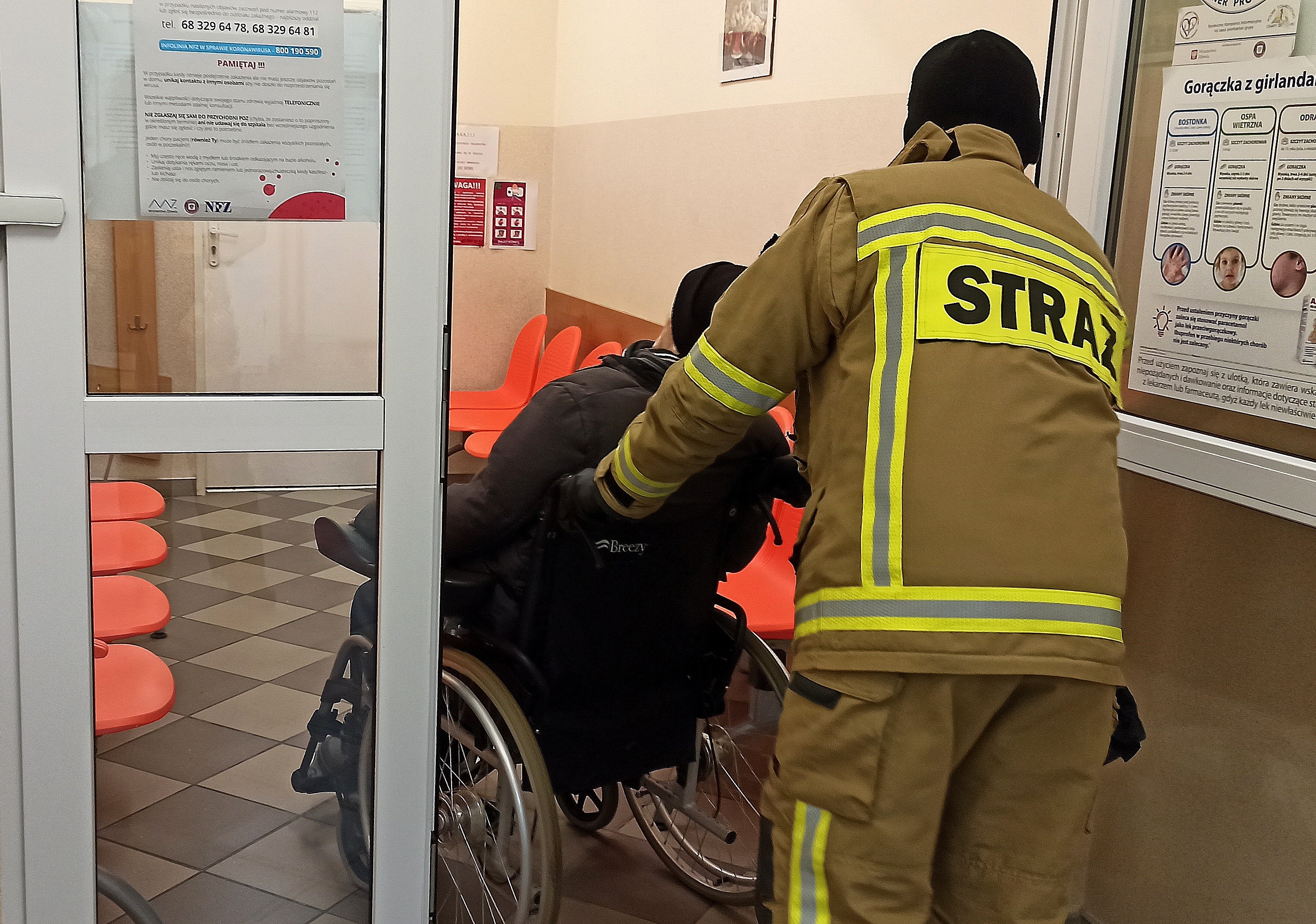 W dniu 17 lutego 2021 r. strażacy zabezpieczeni w środki ochrony indywidualnej udzielili wsparcia pomagając starszemu mężczyźnie z miejscowości Wschowa w dotarciu do punktu szczepień zlokalizowanym w Przychodni Lekarskiej Eskulap we Wschowie.