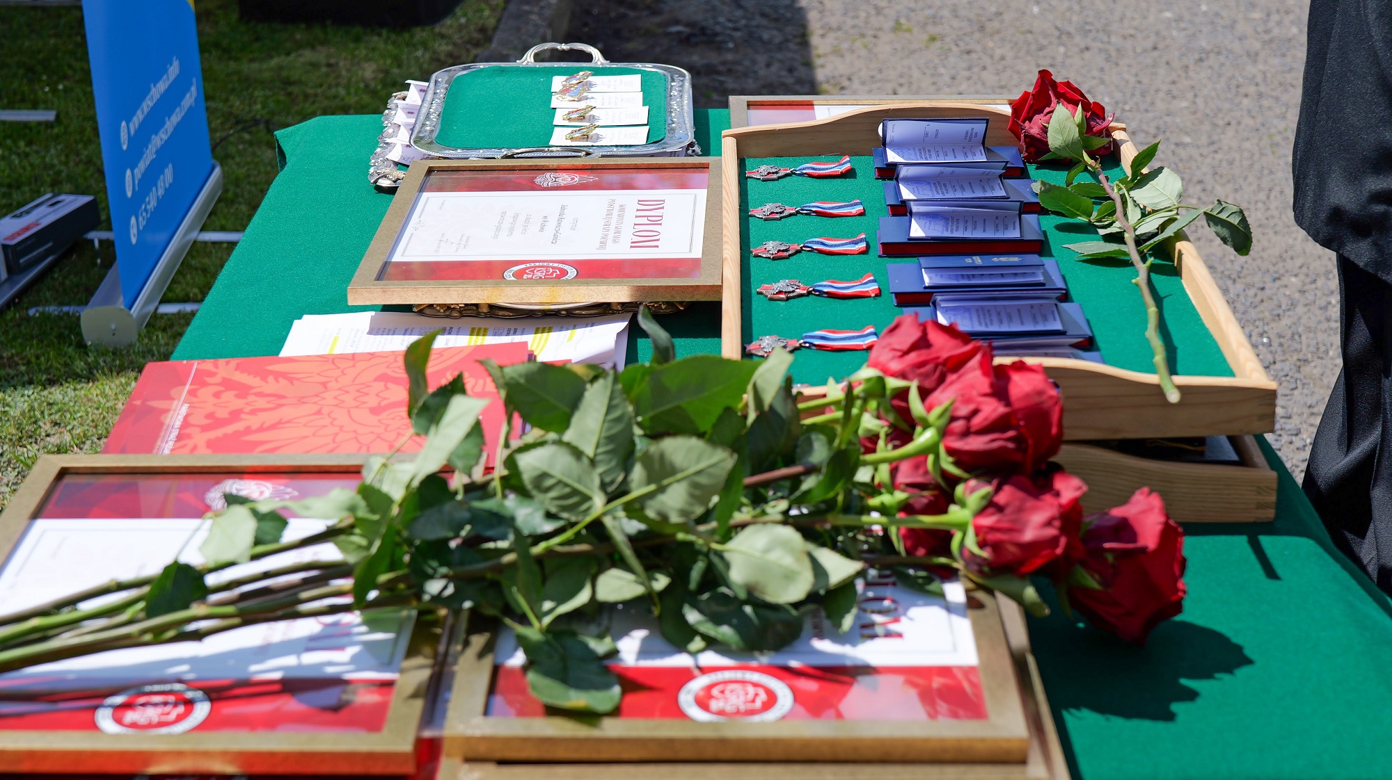 Kolejnym elementem uroczystego apelu było wręczenie odznaczeń, awansów i wyróżnień funkcjonariuszom Państwowej Straży Pożarnej, strażakom ratownikom Ochotniczych Straży Pożarnych i osobom współpracującym z jednostkami ochrony przeciwpożarowej.