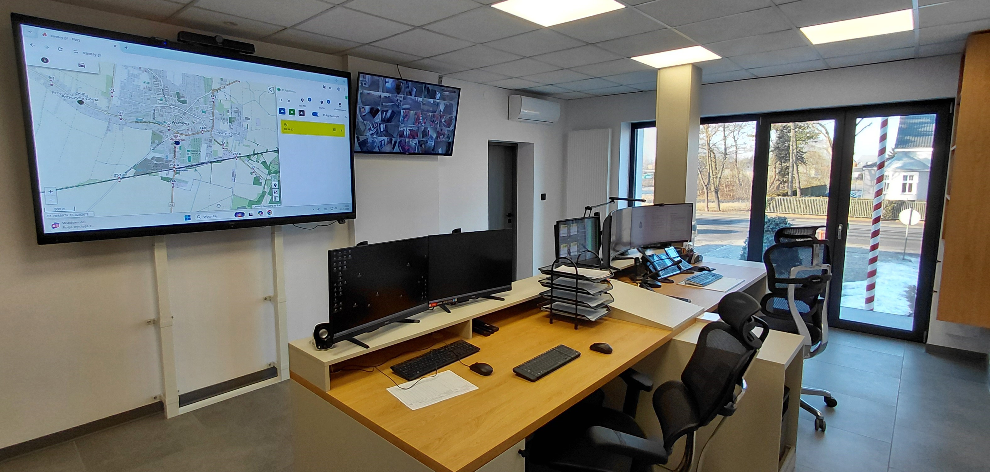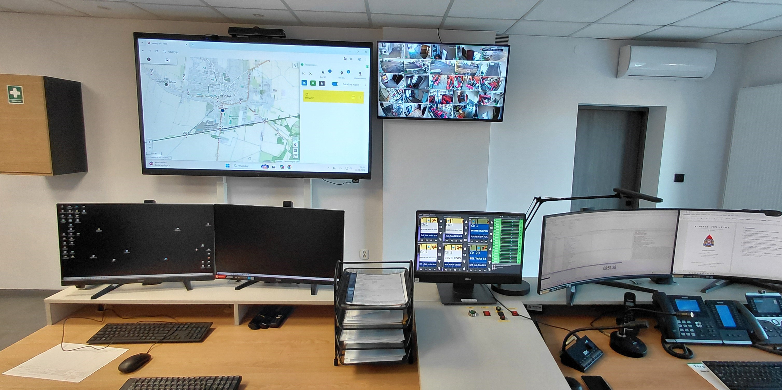Stanowisko Kierowania zostało doposażone w multimedialny zestaw do wideokonferencji do pracy sztabu.