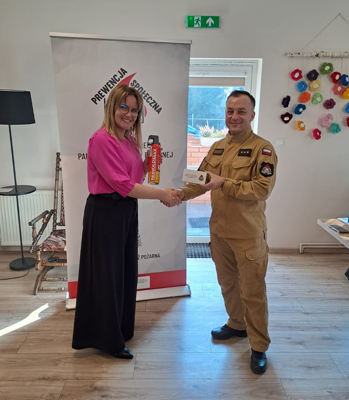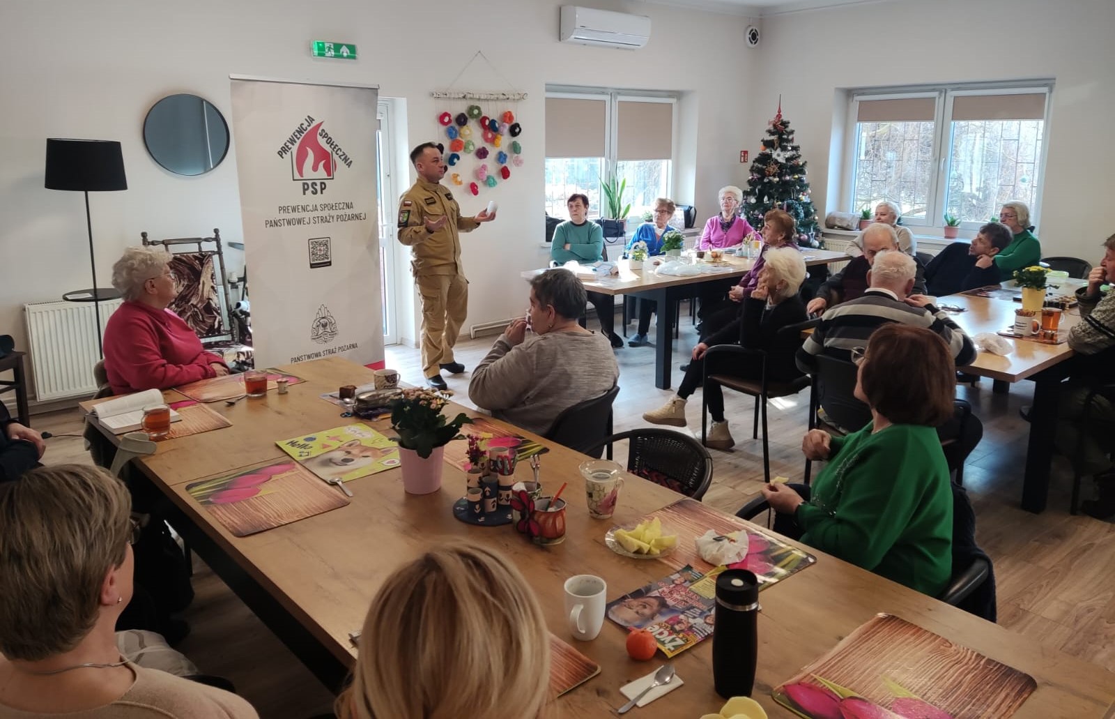 W dniu 16.01.2026 r. asp. sztab. Arkadiusz Brzechwa – koordynator powiatowy do spraw prewencji społecznej z Komendy Powiatowej Państwowej Straży Pożarnej we Wschowie odbył wizytację w Dziennym Domie „Senior+” we Wschowie. Podczas spotkania zostały omówione aspekty bezpieczeństwa w ramach prewencji społecznej oraz przekazane informacje dotyczące zagrożeń ze strony tlenku węgla. Przekazano również praktyczne porady – jakie czujki kupić (gazu, dymu i tlenku węgla), gdzie je zamontować, jak o nie dbaći jak reagować na alarm. W trakcie zajęć zostało przekazanych 10 gaśnic oraz 10 czujek tlenku węgla. W spotkaniu uczestniczyło 31 osób.