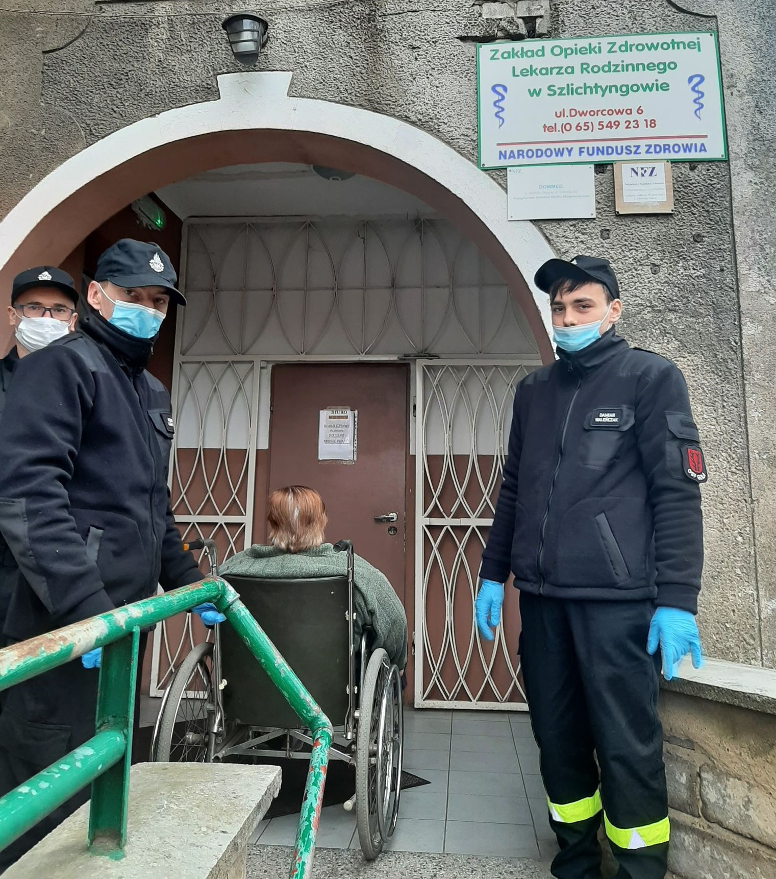 W dniu 26 lutego 2021 r. strażacy zabezpieczeni w środki ochrony indywidualnej pomogli w dowiezieniu starszej osoby do punktu szczepień. Zgłoszenie dotyczyło pomocy w dowiezieniu starszej kobiety z miejscowości Kowalewo do punktu szczepień – Zakładu Opieki Zdrowotnej Lekarza Rodzinnego w miejscowości Szlichtyngowa.