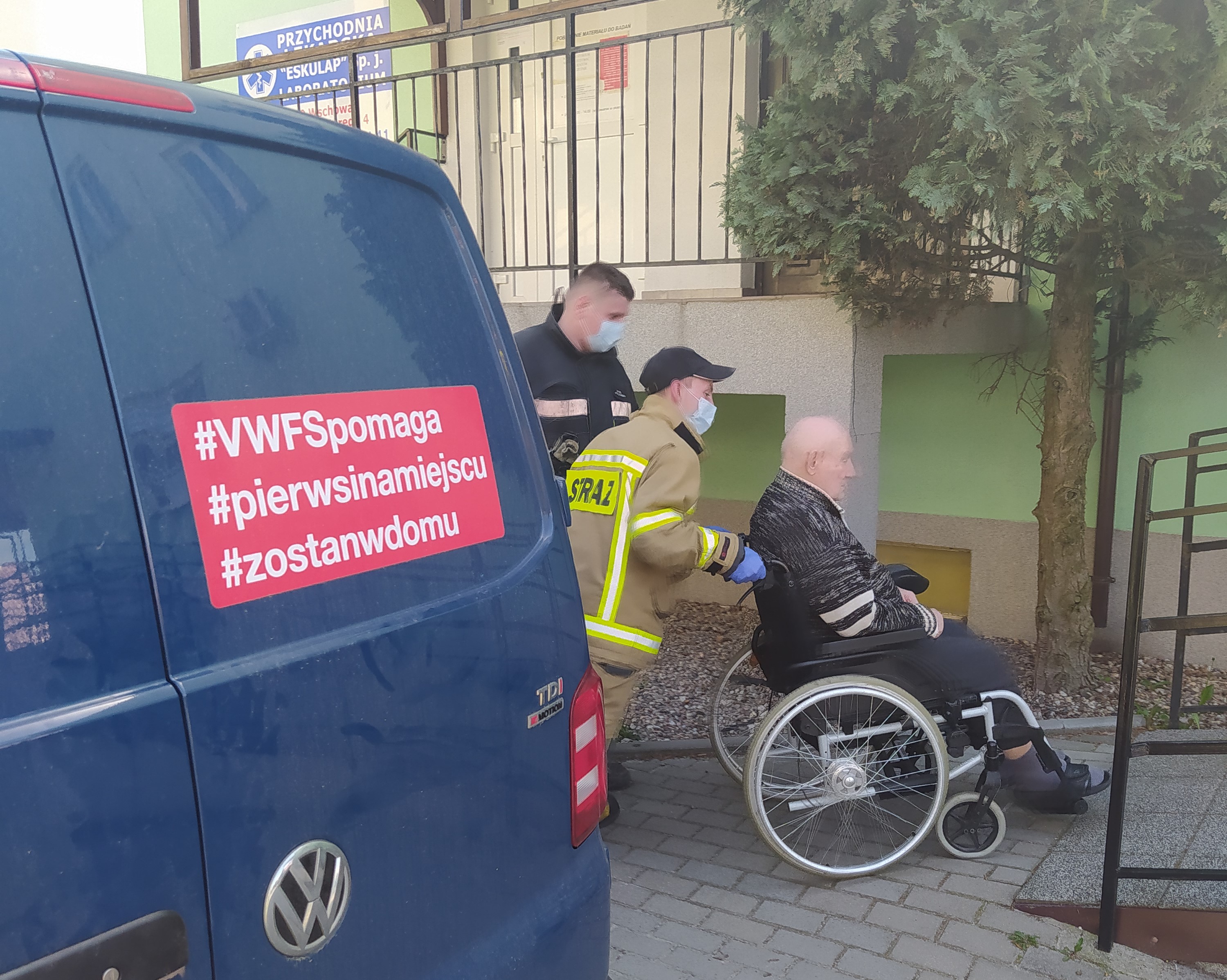 W dniu 11 maja 2021 r. strażacy udzielili wsparcia seniorowi z miejscowości Wschowa pomagając w dotarciu do punktu szczepień zlokalizowanym w Przychodni Lekarskiej Eskulap we Wschowie. Podczas działań strażacy zabezpieczeni są w środki ochrony indywidualnej przestrzegając wytycznych w zakresie transportu osób do punktu szczepień.