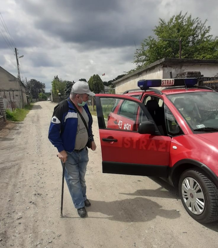 Strażacy udzielili pomocy mężczyźnie w dotarciu do Powszechnego Punktu Szczepień.