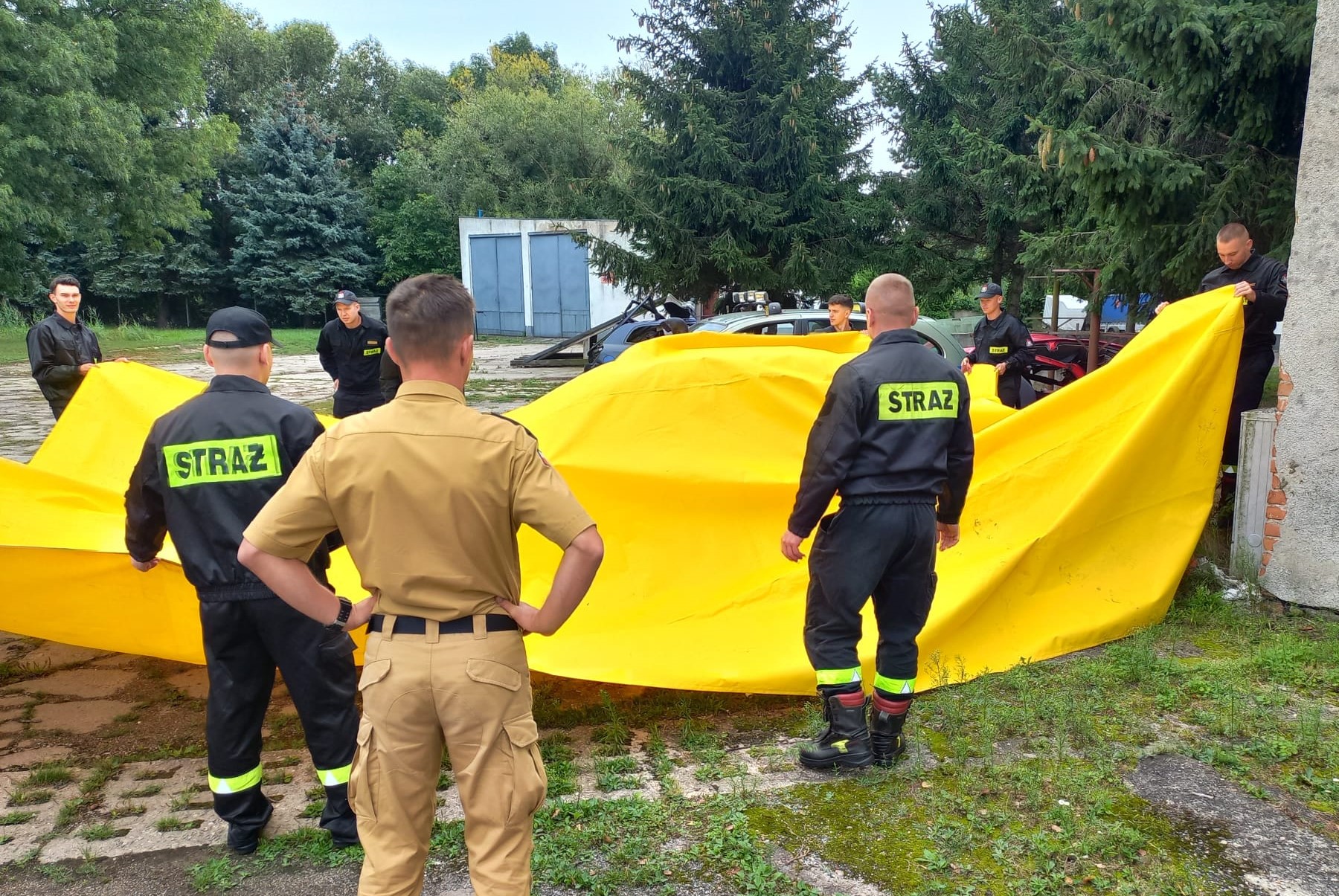 W dniu 22 sierpnia 2024 roku w Komendzie Powiatowej PSP we Wschowie odbyło się szkolenie w zakresie praktycznego wykorzystania i obsługi bezdotykowego testera prądu stałego oraz płachty gaśniczej do gaszenia pożarów samochodów.