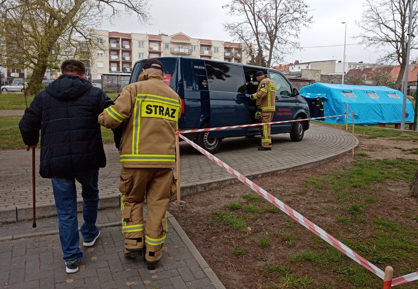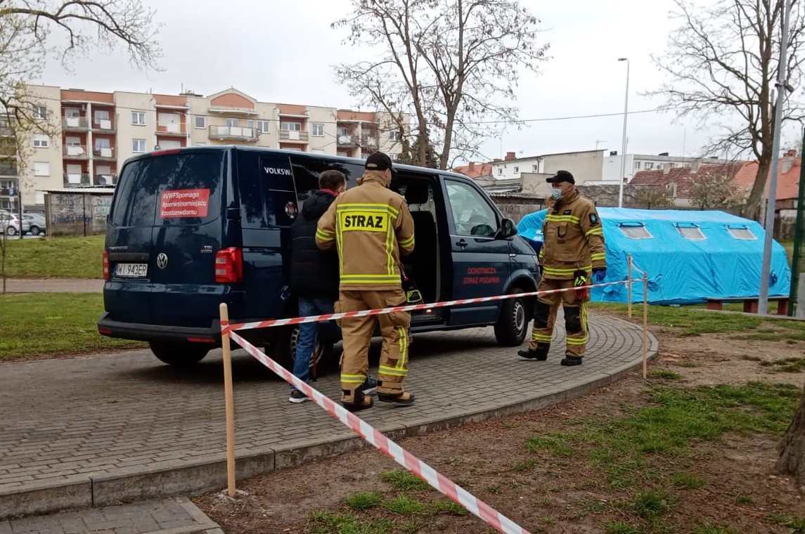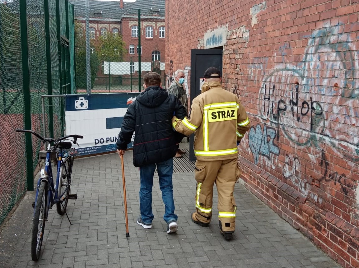 W dniu 1 maja 2021 r. strażacy zabezpieczeni w środki ochrony indywidualnej udzielili wsparcia pomagając mężczyźnie mającego problemy z poruszaniem się z miejscowości Wschowa w dotarciu do Punktu Szczepień Powszechnych zlokalizowanym w I Zespole Szkół we Wschowie.