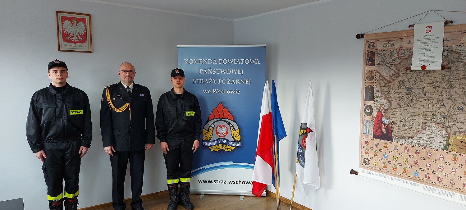 W dniu 29 marca 2023 roku w Komendzie Powiatowej Państwowej Straży Pożarnej we Wschowie odbyło się uroczyste ślubowanie dwóch nowych funkcjonariuszy przyjętych z dniem 1 lutego 2023 roku do służby w Państwowej Straży Pożarnej.