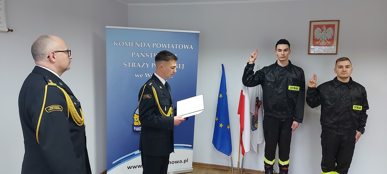 W dniu 8 lutego 2024 roku w Komendzie Powiatowej Państwowej Straży Pożarnej we Wschowie odbyło się uroczyste ślubowanie dwóch nowych funkcjonariuszy przyjętych z dniem 1 grudnia 2023 roku do służby w Państwowej Straży Pożarnej.