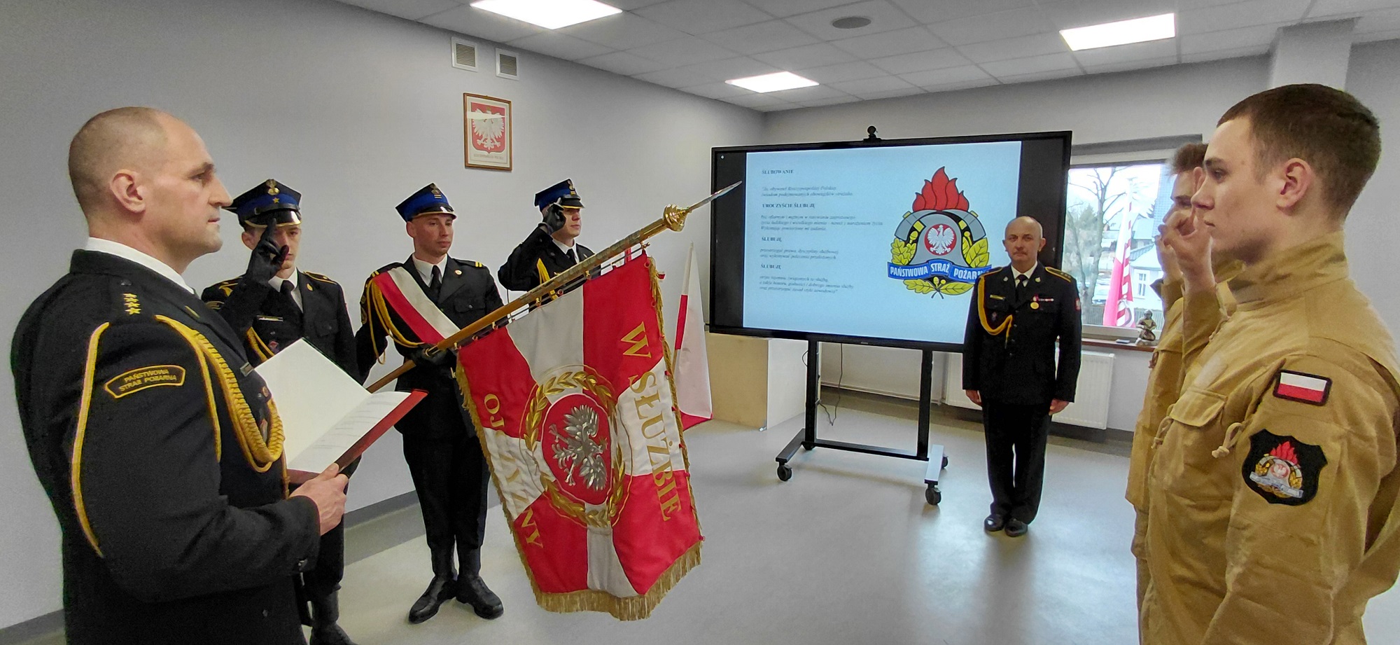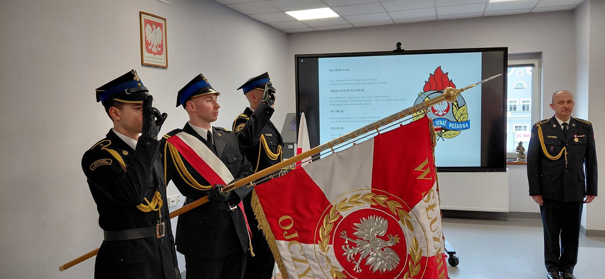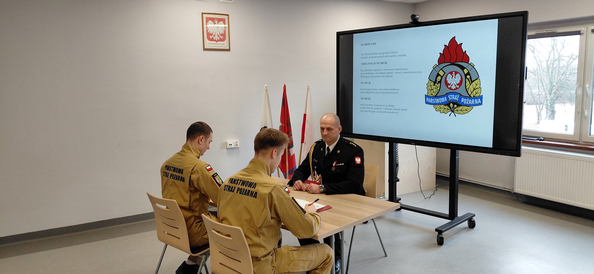 W dniu 13 lutego 2026 roku w Komendzie Powiatowej Państwowej Straży Pożarnej we Wschowie odbyło się uroczyste ślubowanie dwóch funkcjonariuszy przyjętych z dniem 1 grudnia 2025 roku do służby w Państwowej Straży Pożarnej.