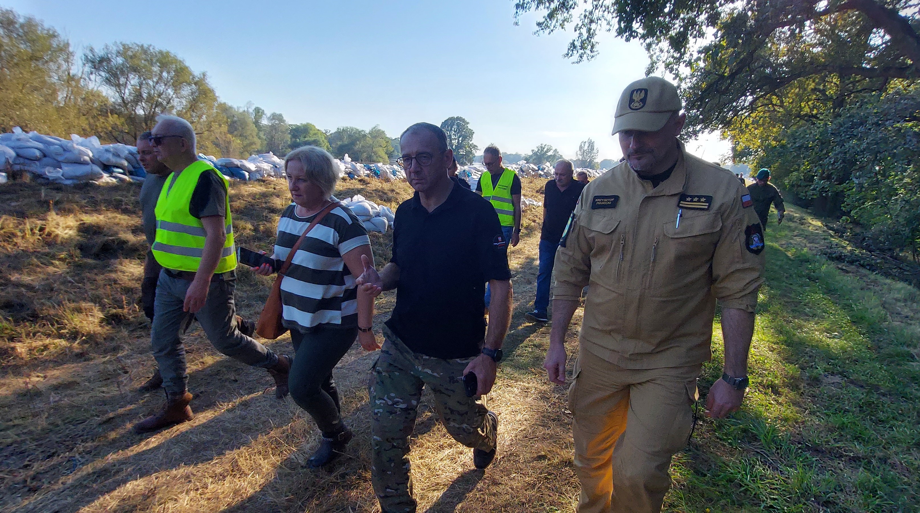Wojewoda Lubuski na terenie działań przeciwpowodziowych w powiecie wschowskim.
