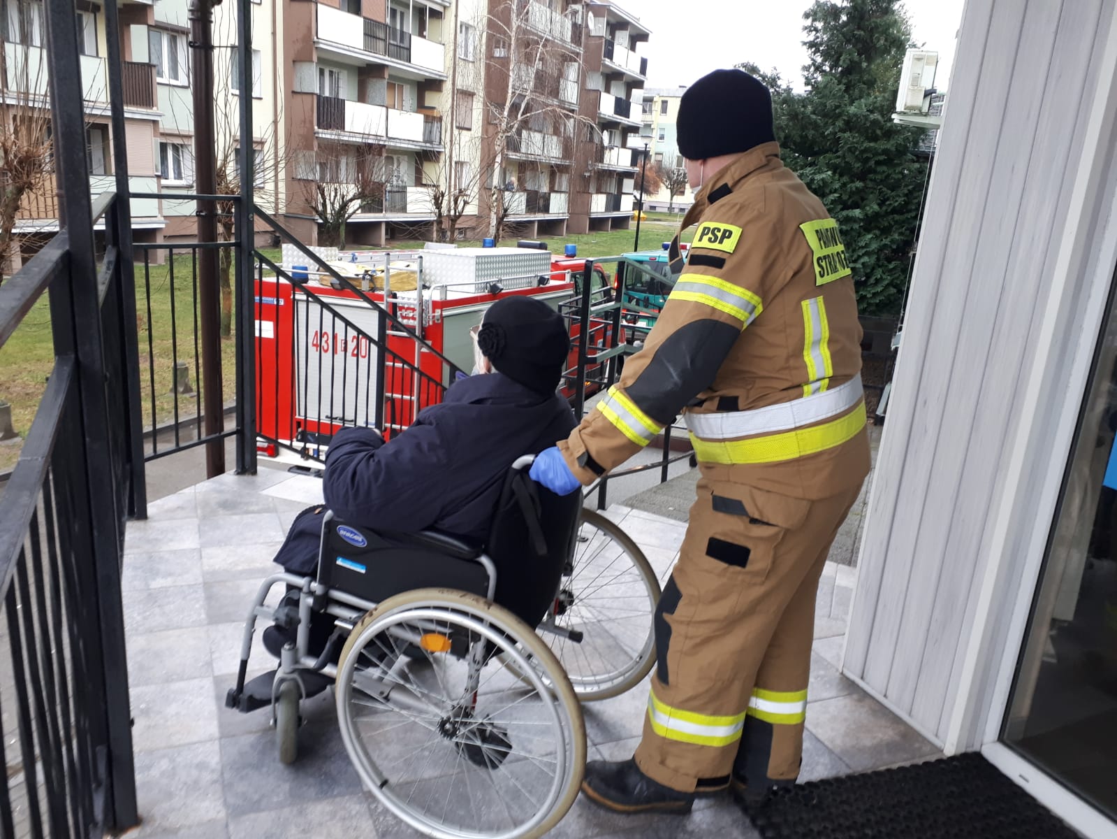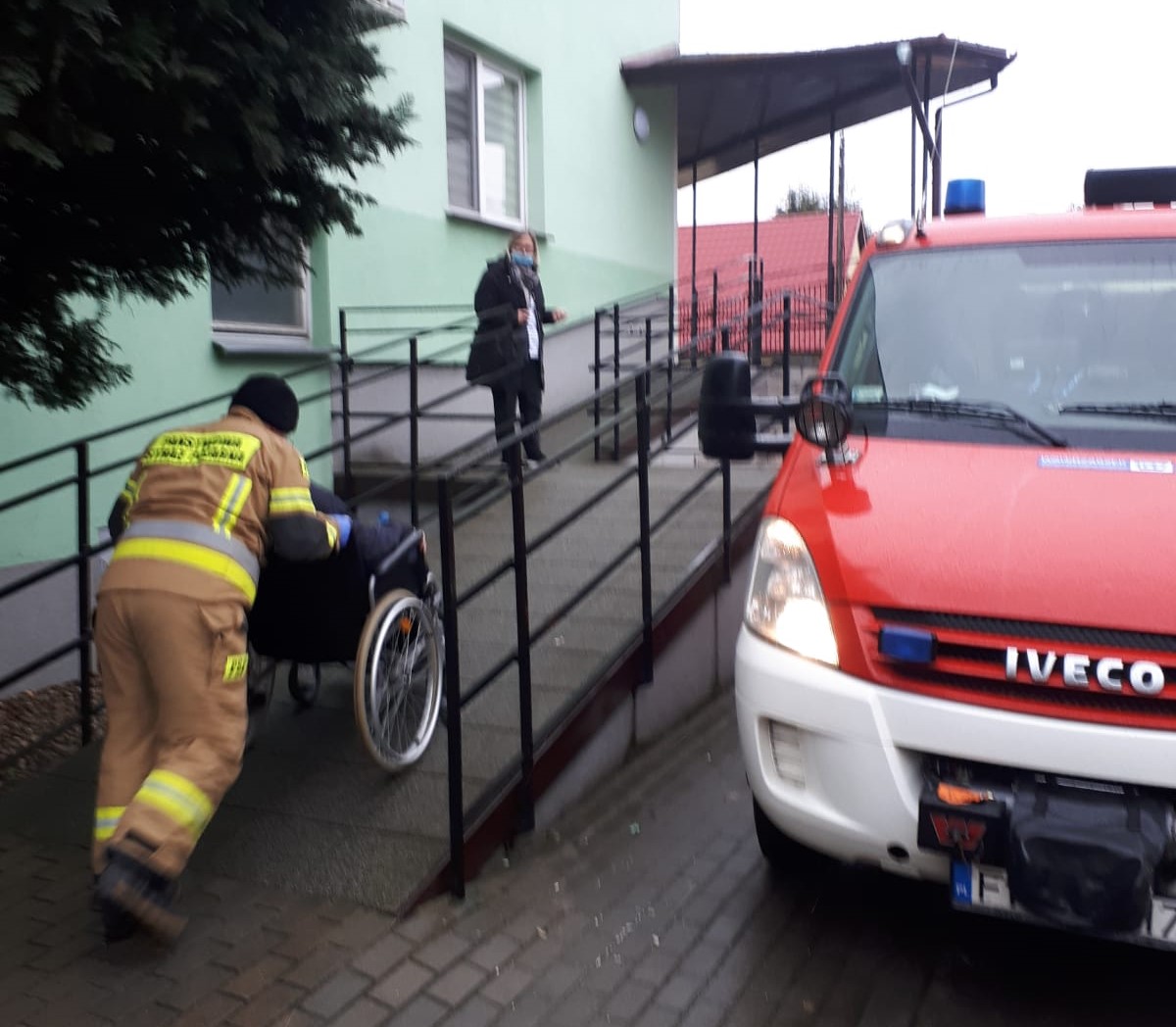 W dniu 11 lutego 2022 r. funkcjonariusze z Komendy Powiatowej Państwowej Straży Pożarnej we Wschowie zabezpieczeni w środki ochrony indywidualnej pomogli w dowiezieniu starszej osoby do punktu szczepień. Zgłoszenie dotyczyło pomocy w dowiezieniu starszej osoby niepełnosprawnej z miejscowości Wschowa do punktu szczepień w Przychodni Eskulap w miejscowości Wschowa.