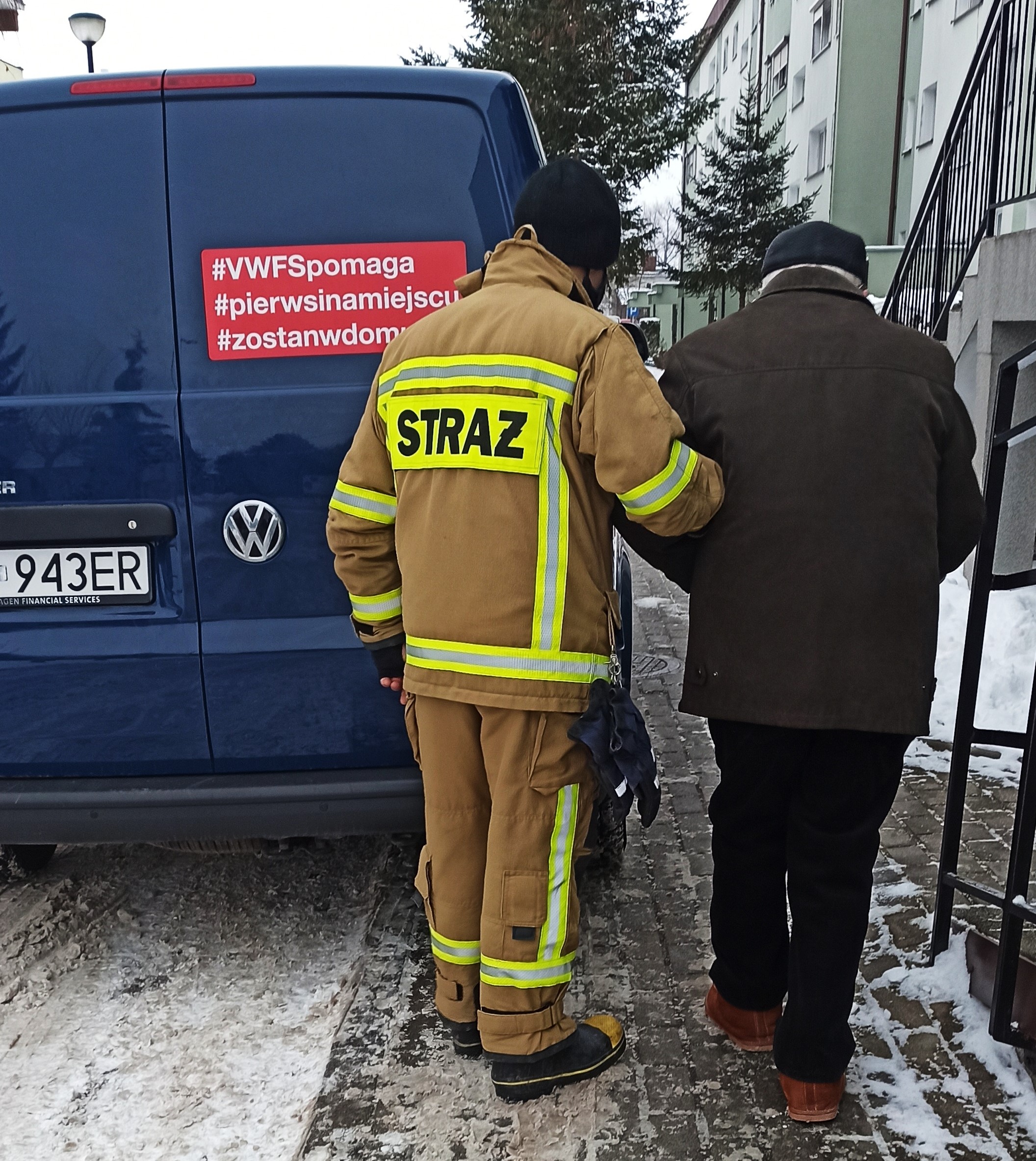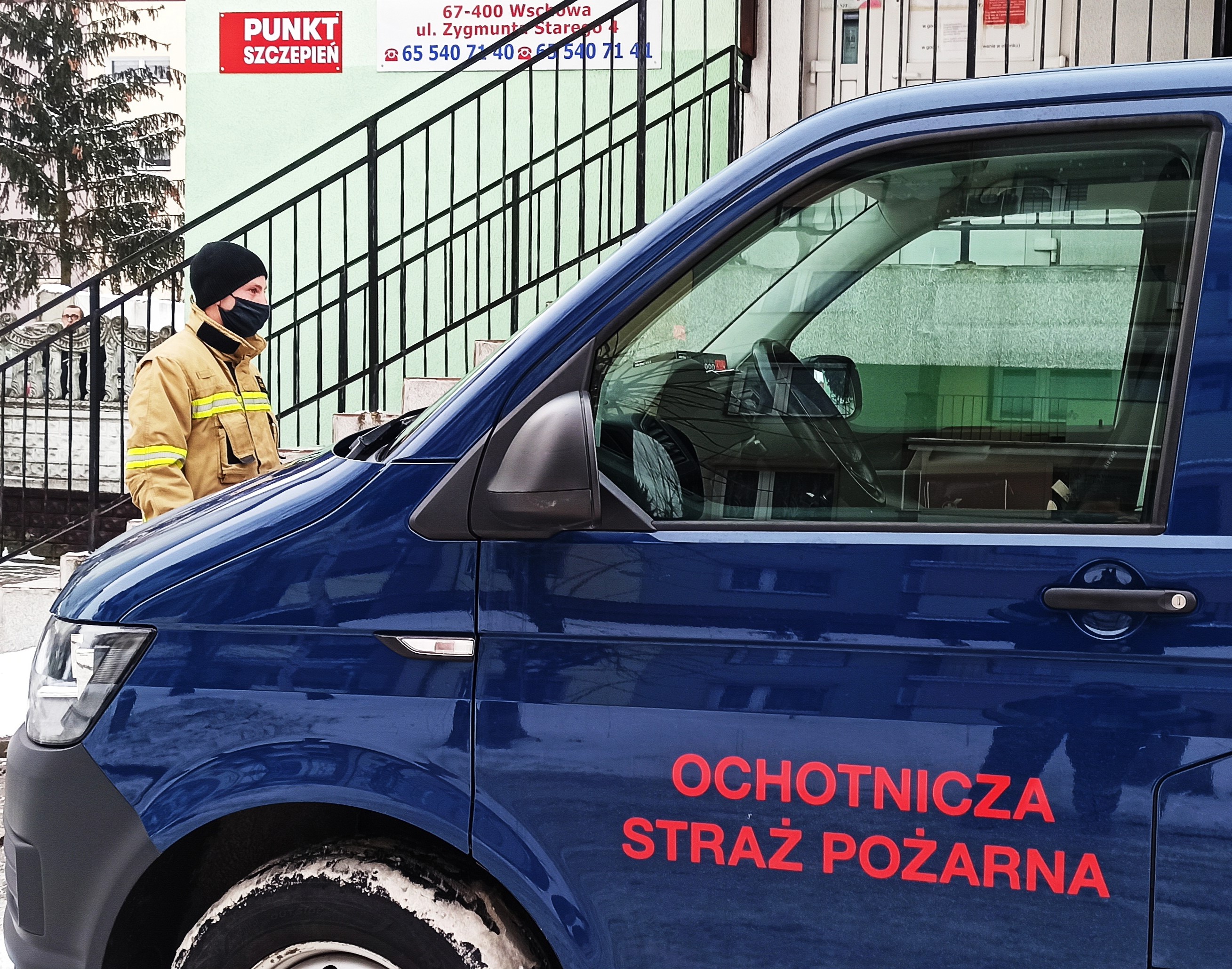 W dniu 10 lutego 2021 r. strażacy zabezpieczeni w środki ochrony indywidualnej pomogli w dowiezieniu starszej osoby do punktu szczepień. Zgłoszenie dotyczyło pomocy w dowiezieniu starszej osoby z miejscowości Wschowa do punktu szczepień w ośrodku zdrowia w miejscowości Wschowa.