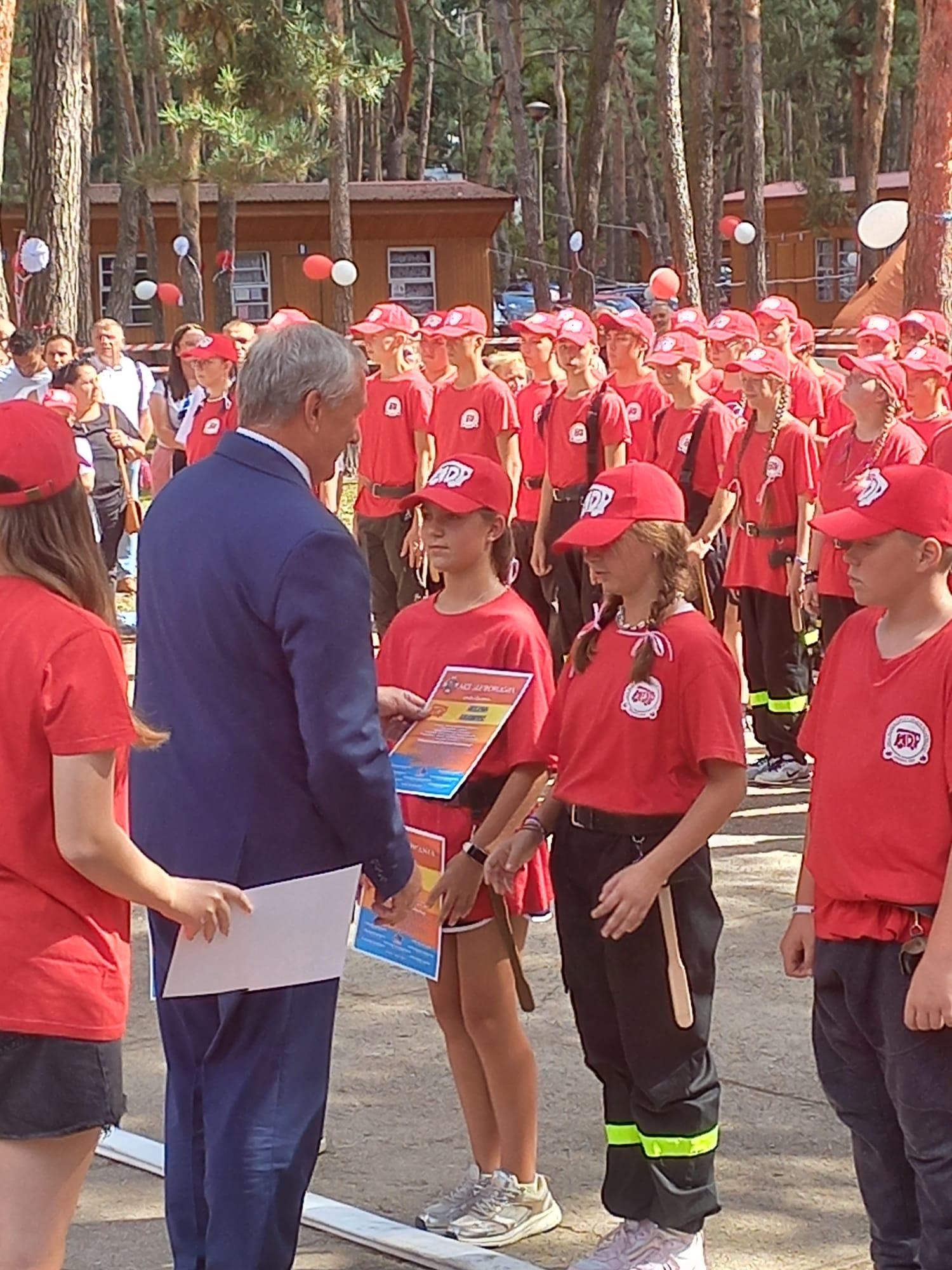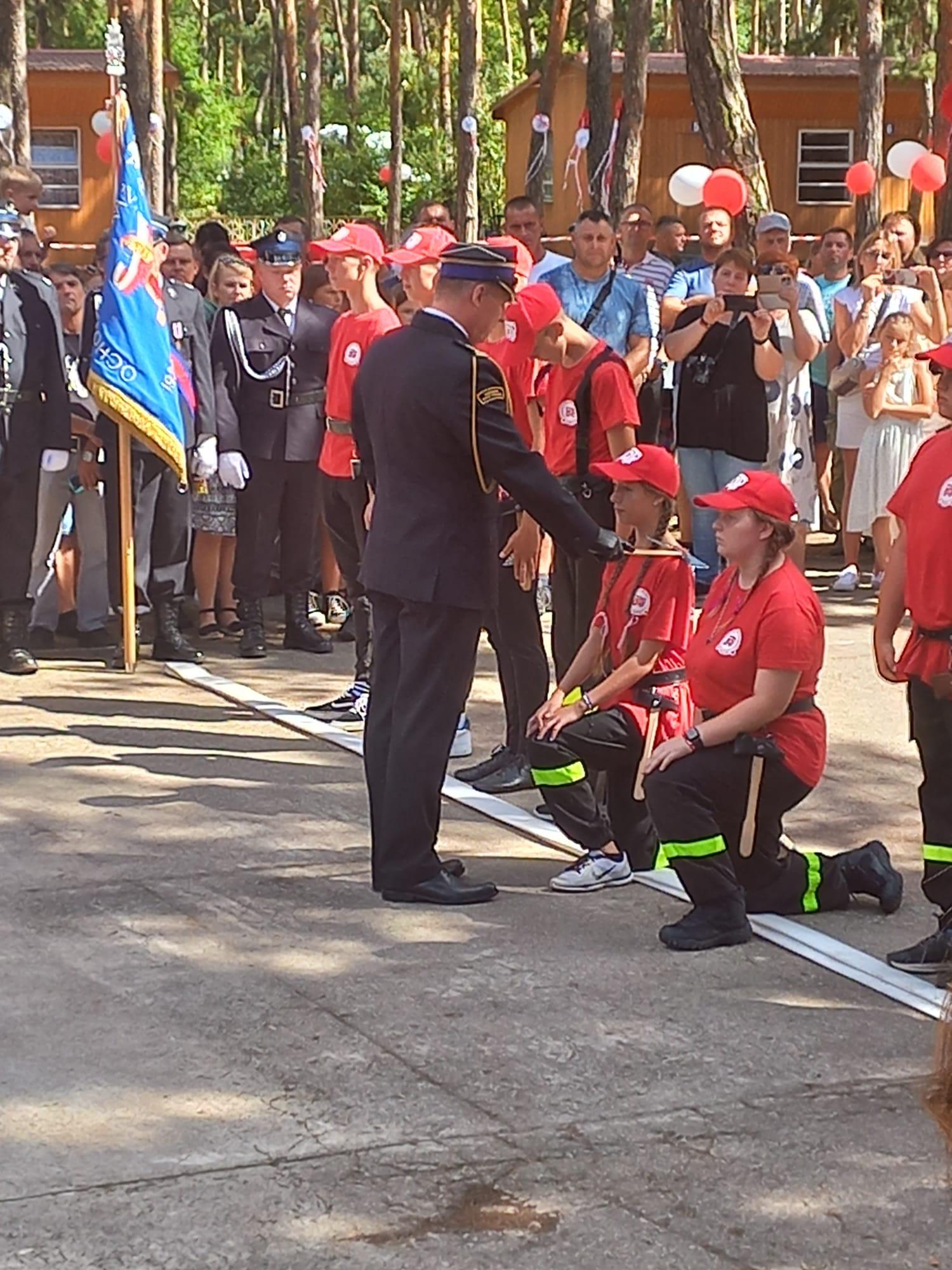 W dniu 11 sierpnia 2024 roku w połowie obozu, 86 uczestników obozu przystąpiło do ślubowania oraz zostało pasowanych na strażaka- członka Młodzieżowej Drużyny Pożarniczej. Na uroczystości, wraz ze ślubującą młodzieżą obecni byli ich dumni rodzice oraz koledzy i koleżanki z drużyny, którzy ślubowali już wcześniej.