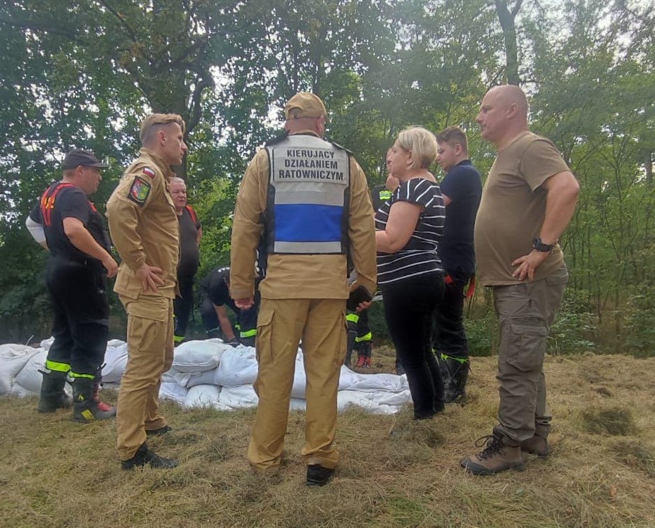 Zastępca Lubuskiego Komendanta Wojewódzkiego PSP na terenie działań przeciwpowodziowych w gminie Szlichtyngowa