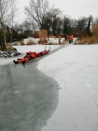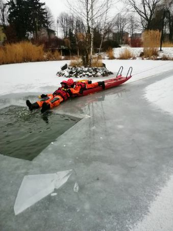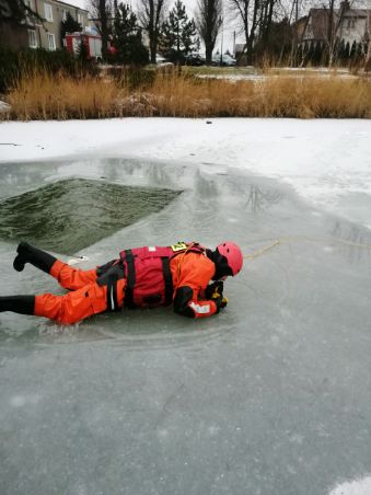 - Pamiętaj! Najważniejsze jest własne bezpieczeństwo. Jeśli lód załamał się pod osobą poszkodowaną, może załamać się również pod Tobą. Dlatego tak ważne jest wezwanie pomocy profesjonalistów. Ratownik bez odpowiedniego zabezpieczenia może przebywać w zimnej wodzie krótko. Po 3. minutach dochodzi do wyziębienia organizmu.