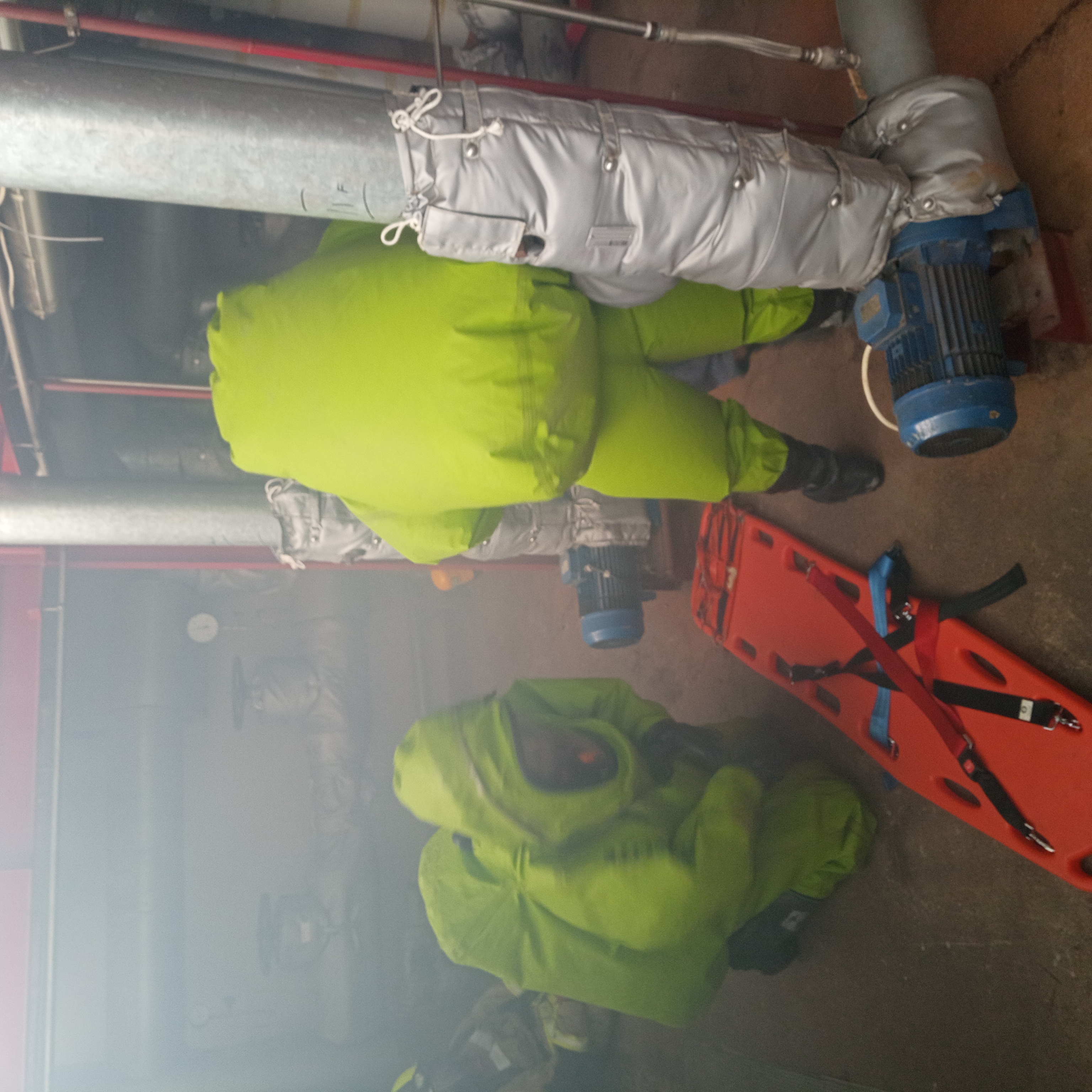 Scenariusz zakładał, że podczas rutynowych prac serwisowo-remontowych w budynku sprężarkowni doszło do rozszczelnienia instalacji amoniakalnej. W pomieszczeniu znajdowało się dwóch pracowników. Na skutek zaistniałego zdarzenia jeden wybiegł z budynku, a drugi pozostając w środku nie dawał oznak życia. Na zewnątrz obiektu zauważono wyciek i obłok gazowy emitowany z nieszczelności powstałej na płaszczu jednej z rur instalacji z amoniakiem.