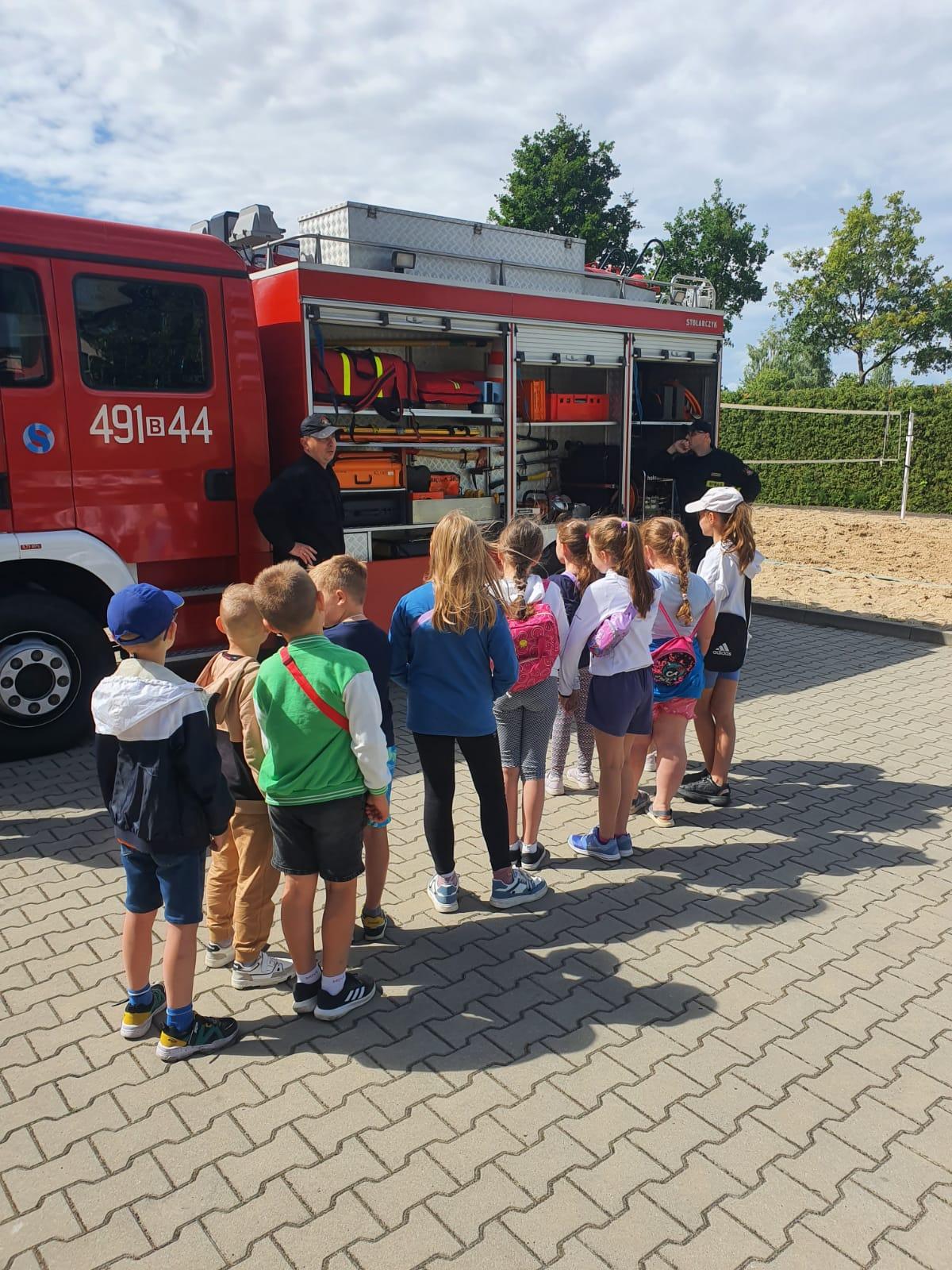 Dzieci miały okazję z bliska zobaczyć sprzęt, z którego korzystają strażacy podczas pożarów czy wypadków, a także zajrzeć do wnętrza wozów strażackich.