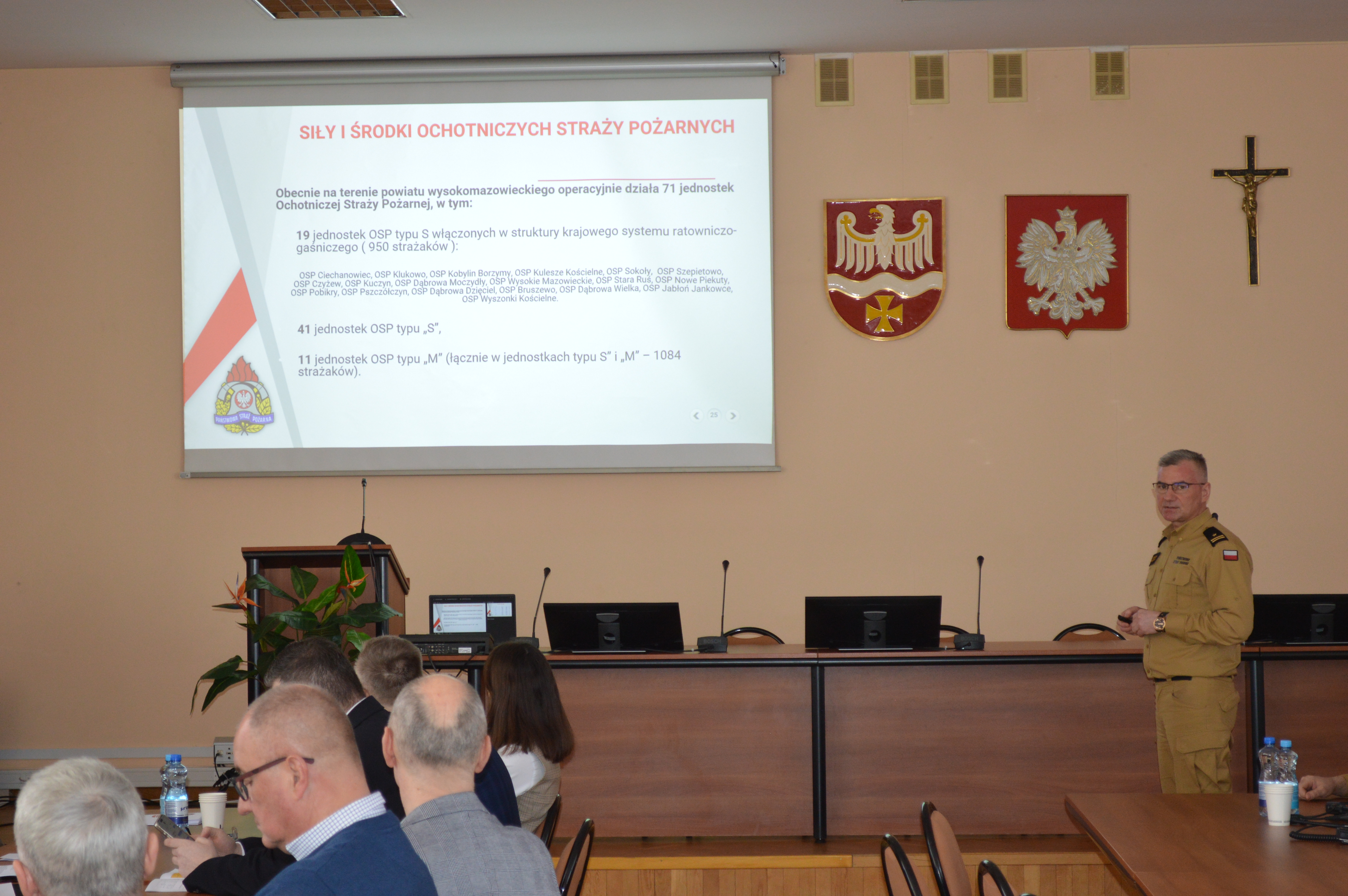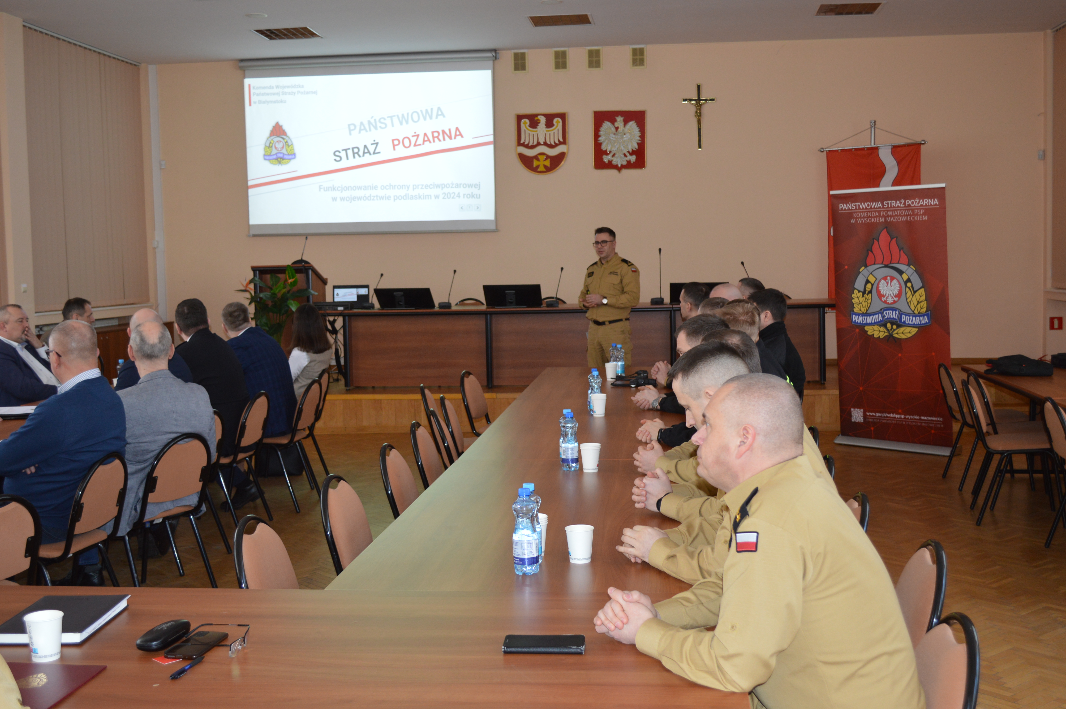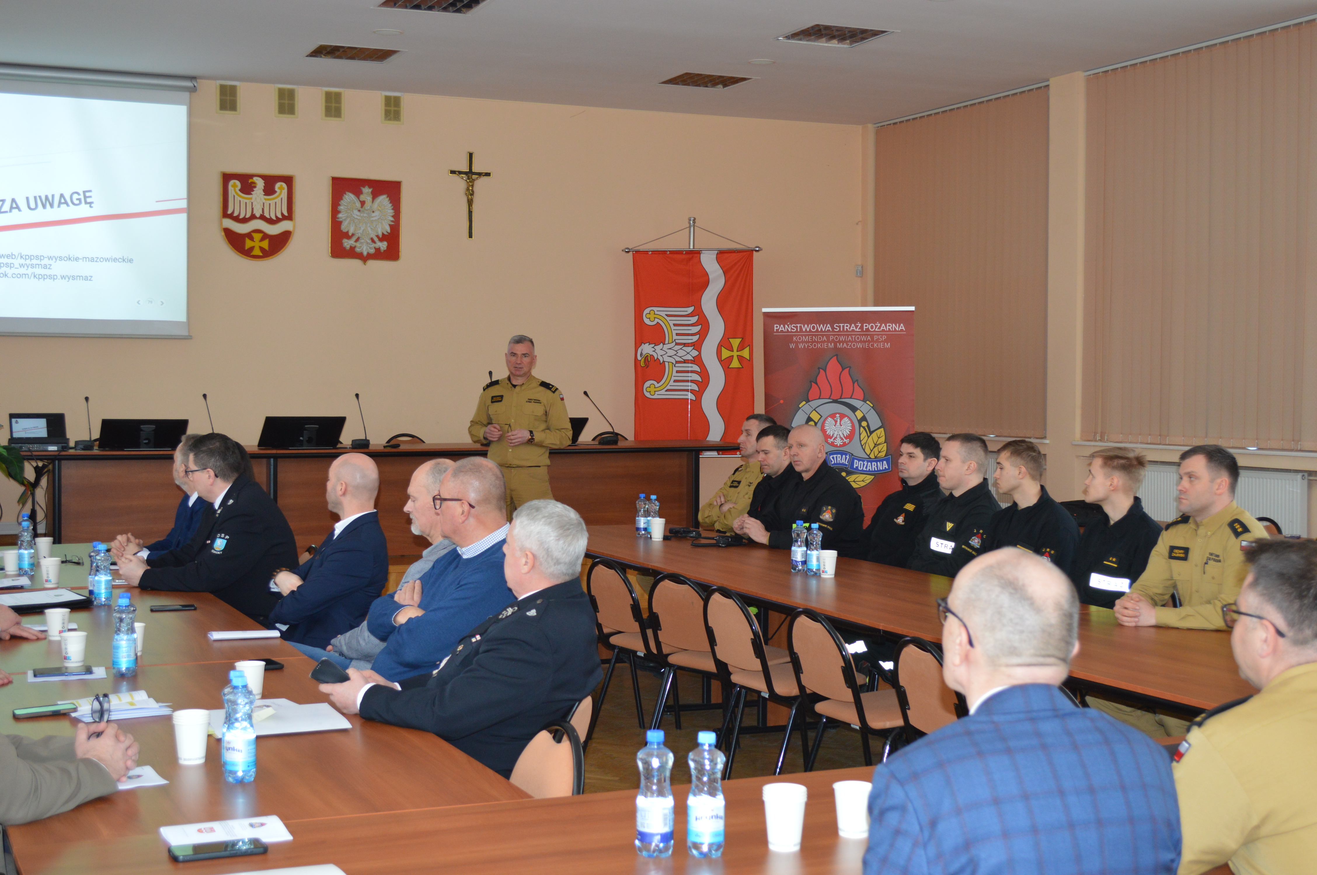 20 lutego 2025 roku w sali konferencyjnej Starostwa Powiatowego w Wysokiem Mazowieckiem odbyła się odprawa roczna podsumowująca działalność jednostek ochrony przeciwpożarowej powiatu wysokomazowieckiego w 2024 roku.