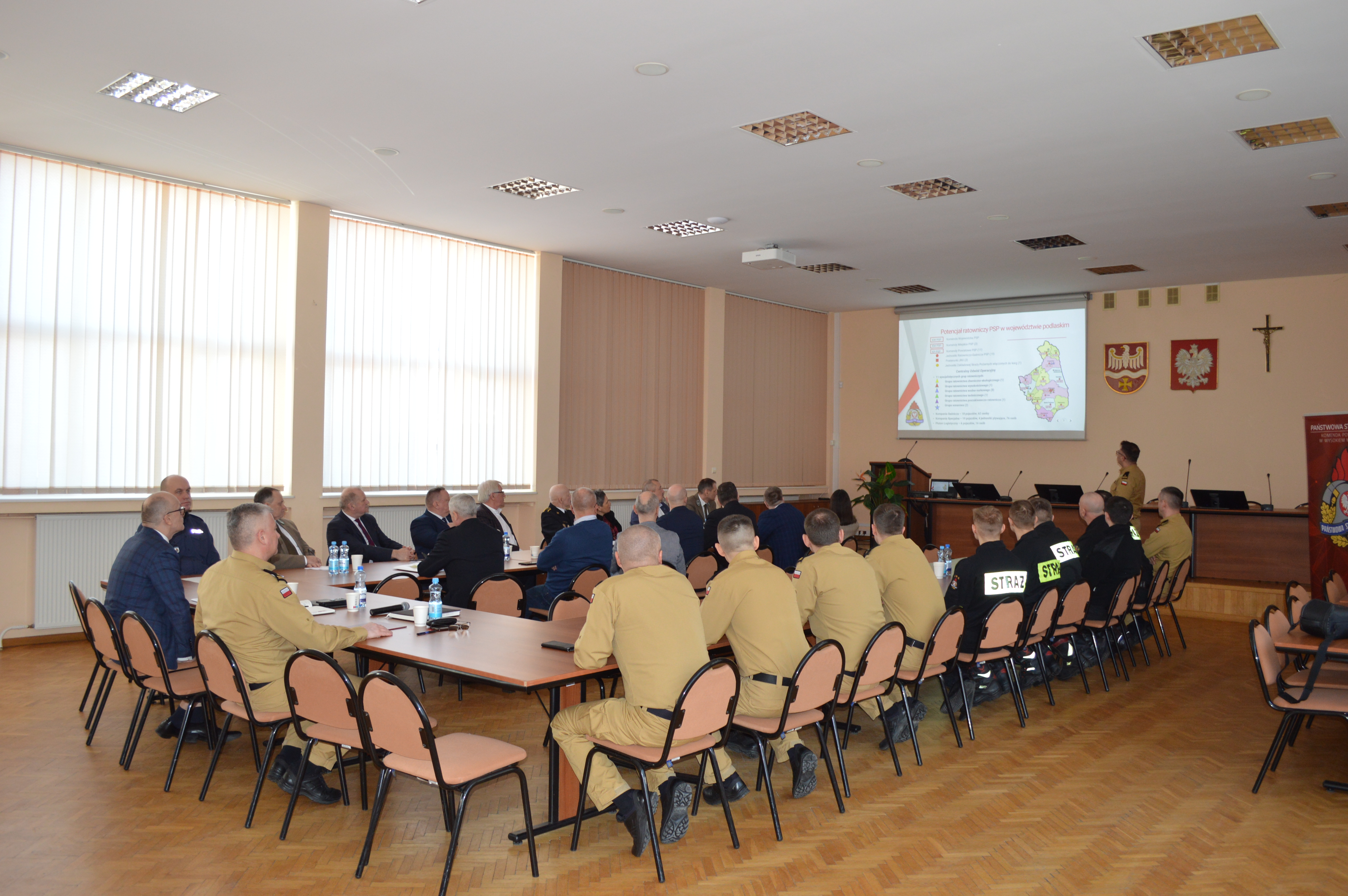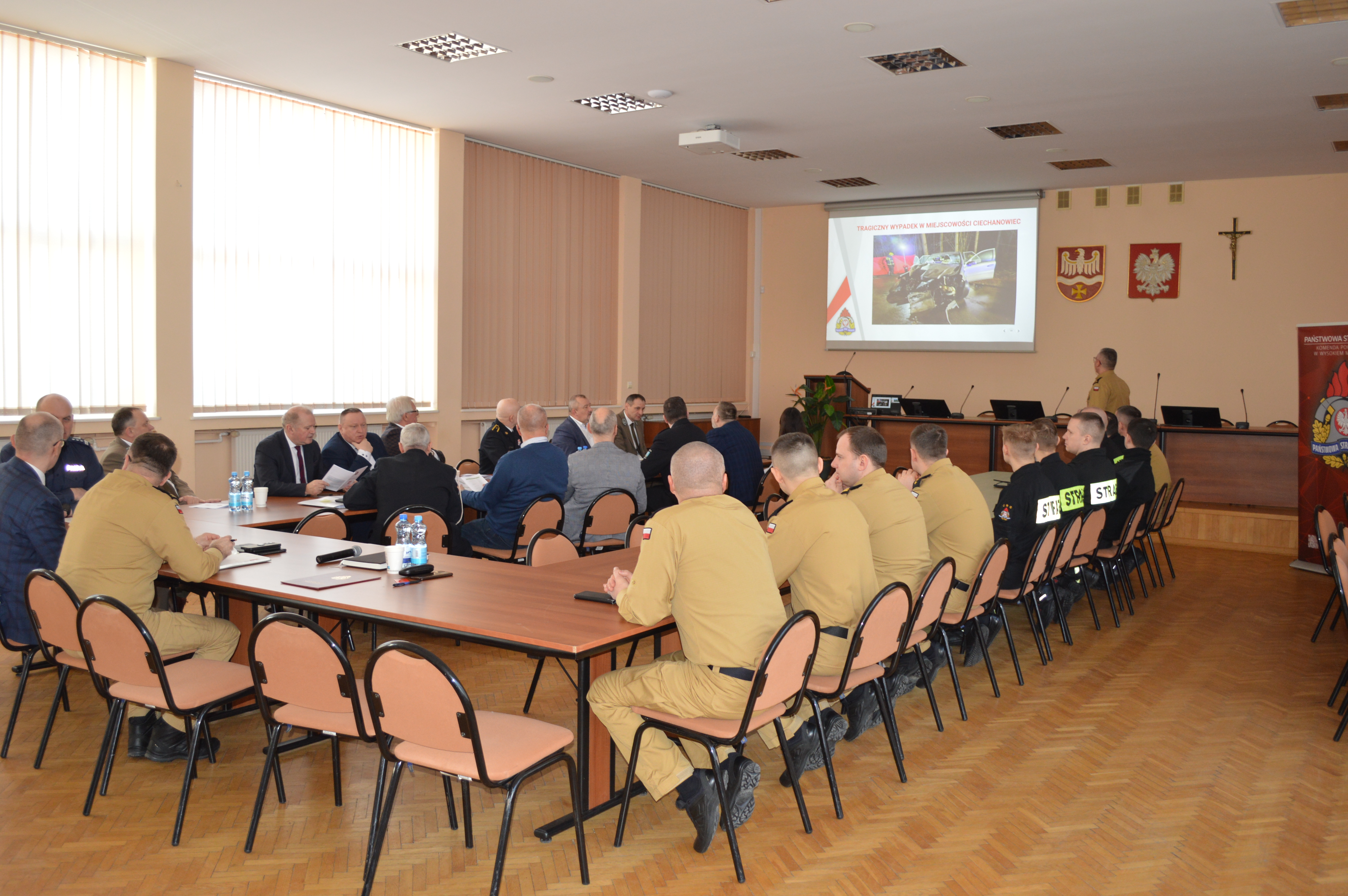 W naradzie udział wzięli funkcjonariusze Komendy Powiatowej PSP w Wysokiem Mazowieckiem, na czele z Komendantem Powiatowym PSP mł. bryg. Wojciechem Sokołowskim oraz zaproszeni goście, wśród których znaleźli się: Zastępca Podlaskiego Komendanta Wojewódzkiego Państwowej Straży Pożarnej – mł. bryg. Łukasz Chankowski, starosta wysokomazowiecki i jednocześnie prezes Zarządu Oddziału Powiatowego ZOSP RP – Pan Bogdan Zieliński, przedstawiciele władz samorządowych szczebla gminnego w osobach wójtów i burmistrzów oraz przedstawiciele służb współdziałających.