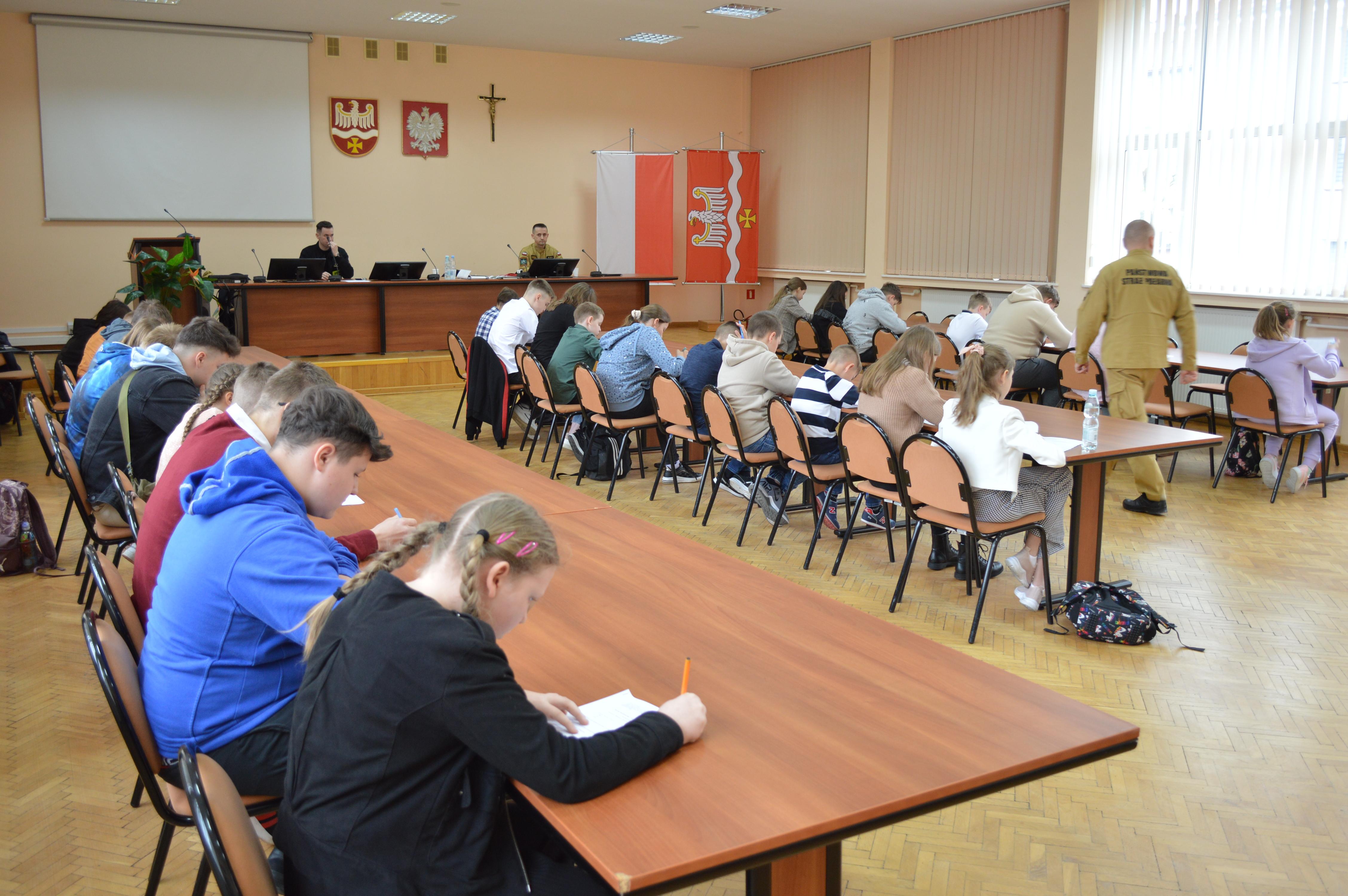 18 kwietnia 2024 r. w Starostwie Powiatowym w Wysokiem Mazowieckiem odbyły się eliminacje powiatowe Ogólnopolskiego Turnieju Wiedzy Pożarniczej ,,Młodzież Zapobiega Pożarom’’.