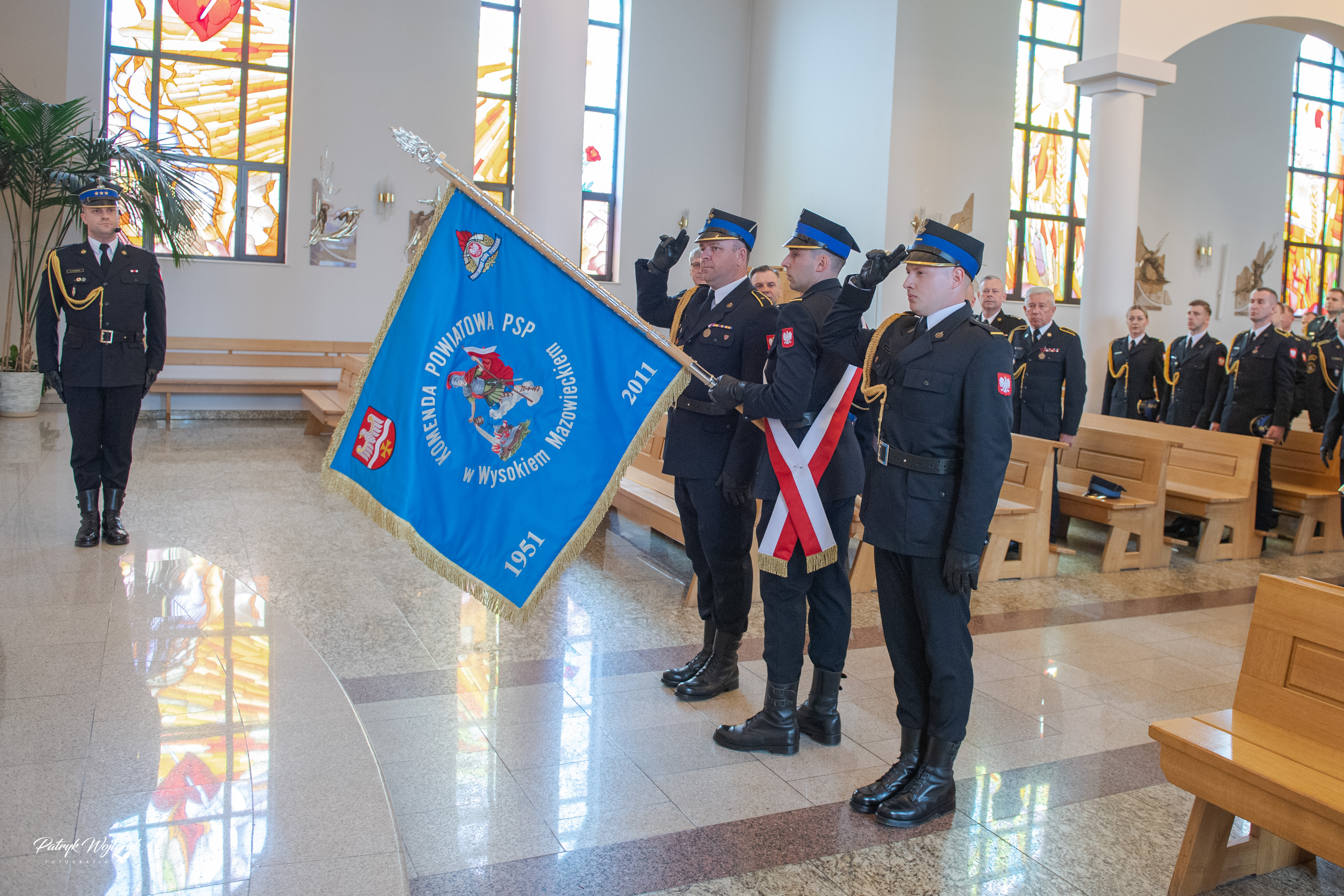 22 maja 2025 roku na placu przed Komendą Powiatową Państwowej Straży Pożarnej w Wysokiem Mazowieckiem odbyła się uroczystość z okazji Powiatowych Obchodów Dnia Strażaka. Obchody rozpoczęły się od uroczystej mszy świętej w kościele p.w. św. Piotra i Pawła, która była koncelebrowana przez: proboszcza parafii ks. Edwarda Łapińskiego, ks. Ryszarda Niwińskiego – proboszcza parafii p.w. Jana Chrzciciela oraz mł. bryg. Wojciecha Ejsmont - kapelana strażaków województwa podlaskiego. Następnie odbył się przemarsz pocztów oraz gości, który był prowadzony przez orkiestrę uczniów z Muzycznej Szkoły Samorządowej I Stopnia w Wysokiem Mazowieckiem. Apel, zgodnie z ceremoniałem rozpoczął się złożeniem meldunku, który od dowódcy uroczystości kpt. Cezarego Zalewskiego odebrał Podlaski Komendant Wojewódzki Państwowej Straży Pożarnej st. bryg. Janusz Kondrat. Następnie odbyło się uroczyste podniesienie flagi państwowej na maszt i odśpiewanie hymnu państwowego. Komendant Powiatowy PSP w Wysokiem Mazowieckiem mł. bryg. Wojciech Sokołowski po powitaniu zaproszonych gości w okolicznościowym przemówieniu podziękował wszystkim strażakom i pracownikom cywilnym za codzienną służbę i pracę oraz za zaangażowanie i wzorowe wykonywanie zadań służbowych. Wśród zaproszonych gości obecni byli między innymi: Wicewojewoda Podlaski Pan Paweł Krutul, Senator RP Pani Anna Bogucka, Starosta Wysokomazowiecki i jednocześnie Prezes Zarządu Oddziału Powiatowego ZOSP RP w Wysokiem Mazowieckiem Pan Bogdan Zieliński, Prezes Zarządu Oddziału Wojewódzkiego ZOSP RP dh Andrzej Koc, przedstawiciele służb mundurowych, służb leśnych, poczty sztandarowe reprezentujące poszczególne gminy z terenu powiatu wysokomazowieckiego, Burmistrzowie i Wójtowie miast i gmin z terenu powiatu wysokomazowieckiego oraz prezesi OSP KSRG z terenu powiatu wysokomazowieckiego.