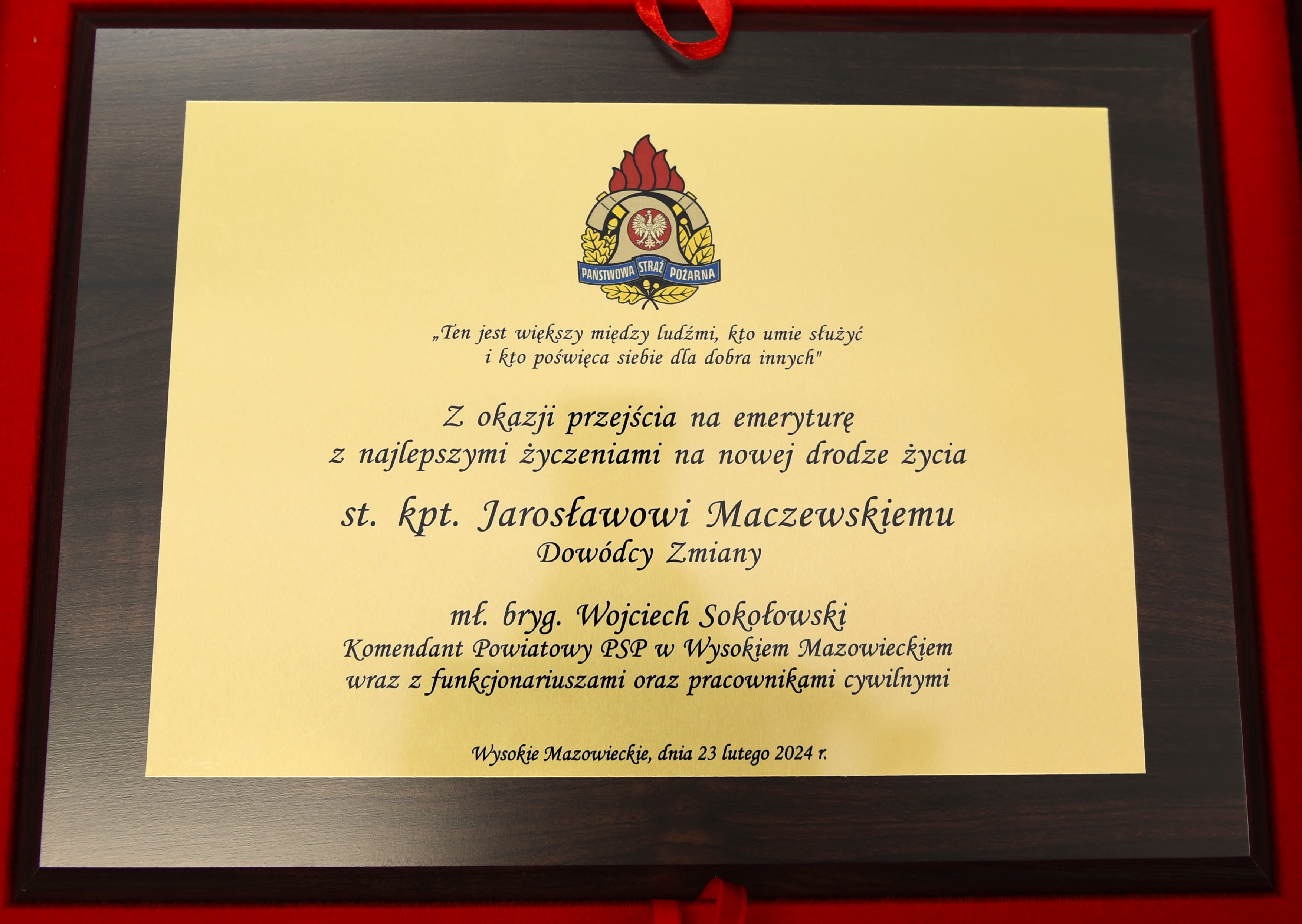 W dniu 23 lutego br. W świetlicy KP PSP Wysokie Mazowieckie odbyła się uroczysta zbiórka w związku z odejściem ze służby dwóch funkcjonariuszy. W stan spoczynku z dniem 23.02.2024 r. przeszli st. kpt. Jarosław Maczewski oraz asp. sztab. Dariusz Kosowicz.