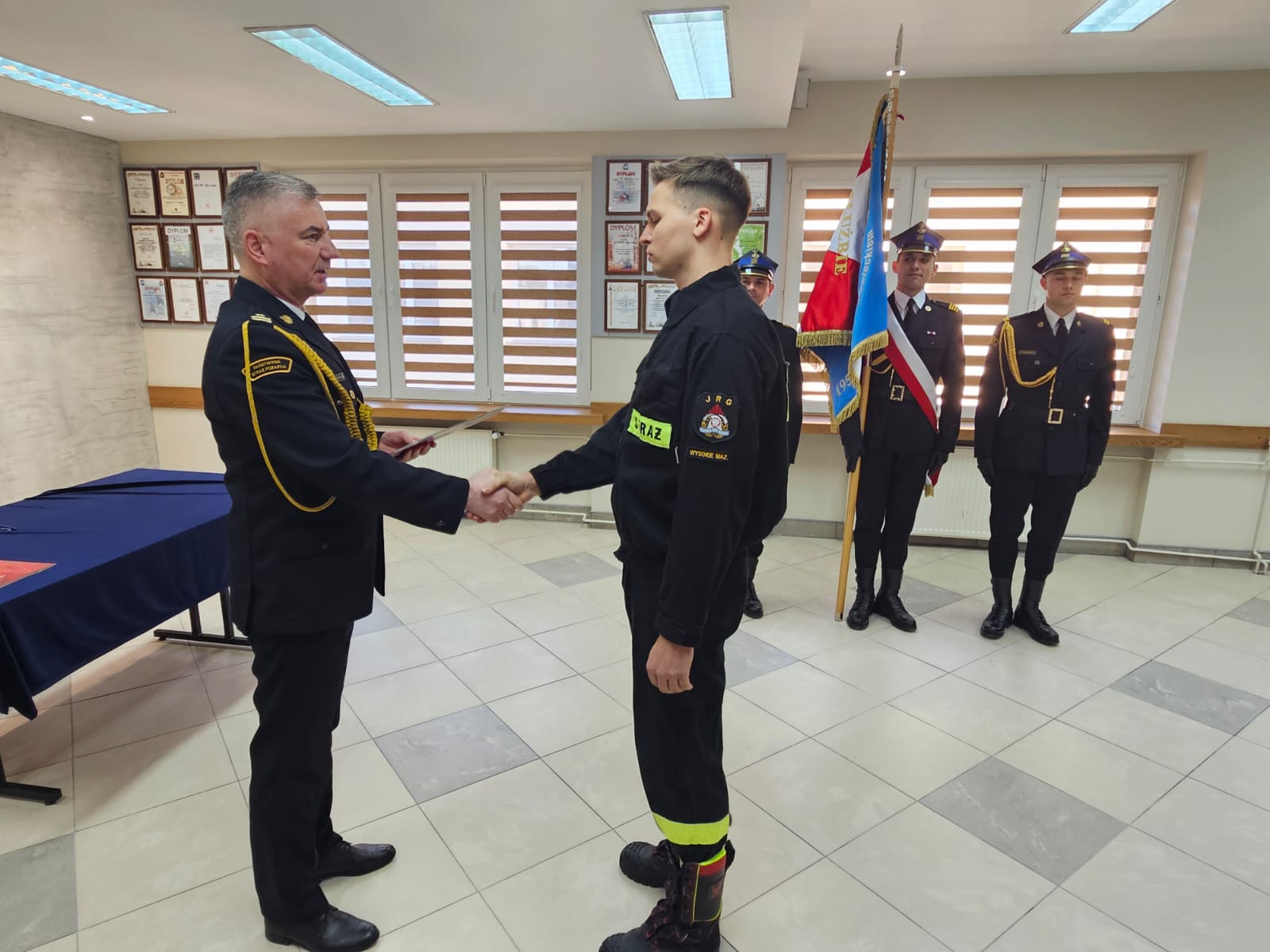 Naszemu nowemu strażakowi życzymy dużo pomyślności, powodzenia i zaangażowania w pełnieniu służby. Niech rota strażackiego ślubowania będzie, niezmiennie i nieustannie motywem przewodnim strażackiego dnia codziennego. Niech satysfakcja z dokonanego wyboru drogi życiowej i zawodowej w przyszłości przyniesie dumę z faktu niesienia pomocy potrzebującym, jak również z bycia strażakiem.