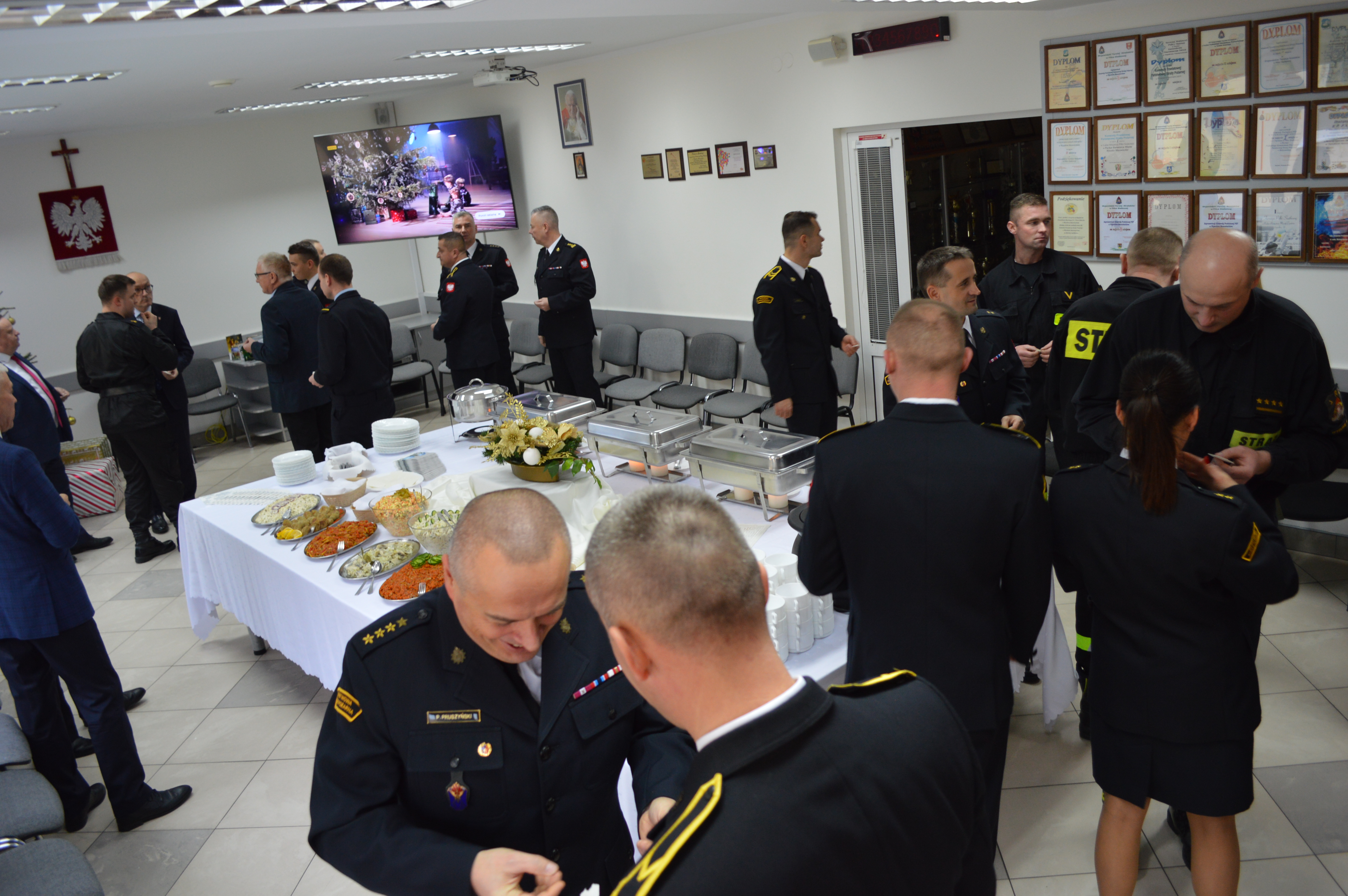 Komendant Powiatowy PSP w Wysokiem Mazowieckiem st. bryg. Adam Frankowski złożył życzenia świąteczne wszystkim funkcjonariuszom, pracownikom oraz zaproszonym gościom. W czasie spotkania głos zabrali także zaproszeni goście. Po przemówieniach i życzeniach gości uczestnicy spotkania tradycyjnie przełamali się opłatkiem składając sobie serdeczne życzenia.