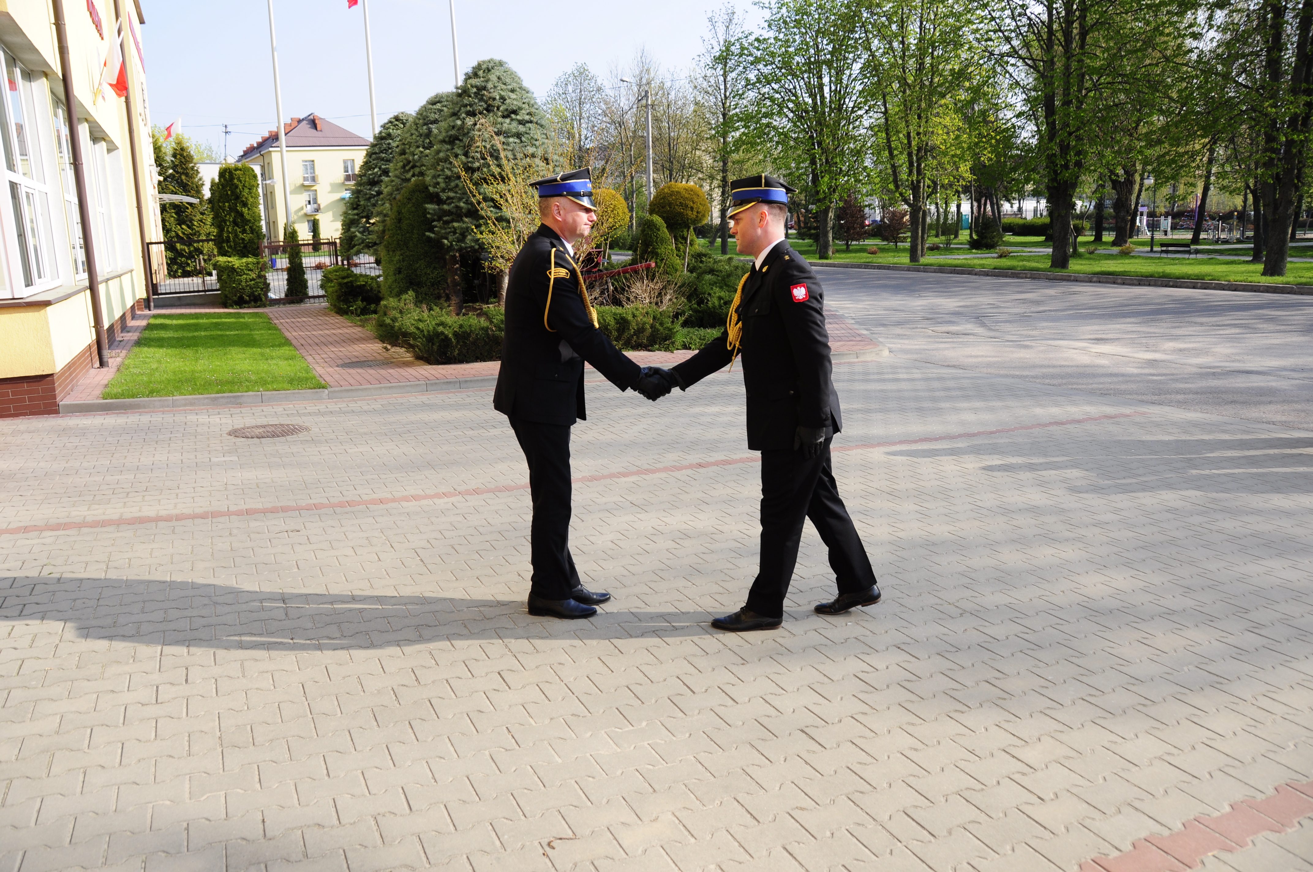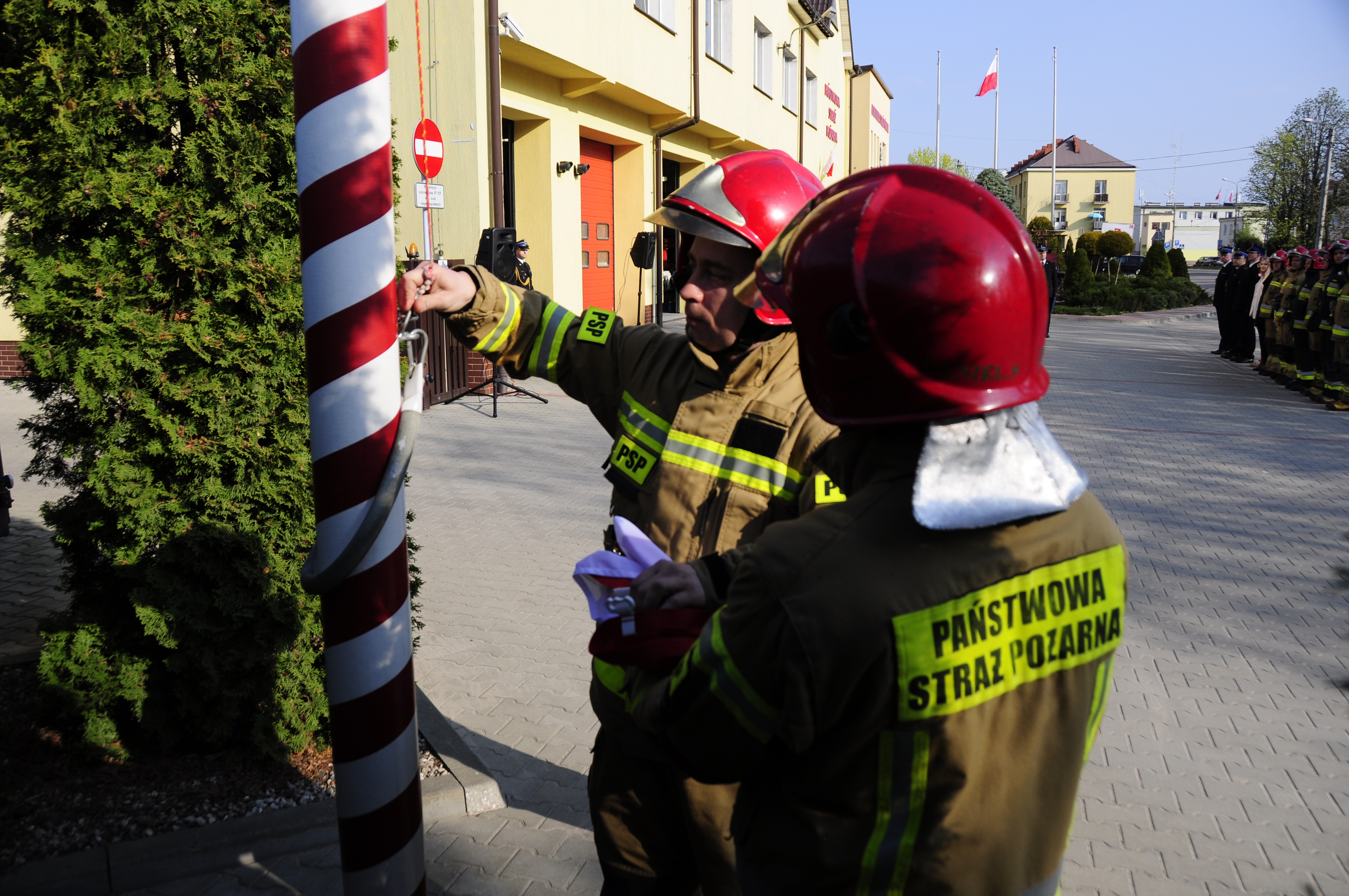 W uroczystości zmiany służbowej oraz podniesienia flagi państwowej na maszt. udział wzięli strażacy zmian służbowych oraz funkcjonariusze i pracownicy cywilni KP PSP w Wysokiem Mazowieckiem. Uroczystość rozpoczęła się od złożenia meldunku przez zastępcę dowódcy JRG mł. kpt. Cezarego Zalewskiego dla zastępcy Komendanta Powiatowego PSP w Wysokiem Mazowieckiem st. kpt. Wojciecha Sokołowskiego. Następnie uroczyście podniesiono flagę państwową na maszt tradycyjnie przy dźwiękach i wspólnym odśpiewaniu hymnu - Mazurka Dąbrowskiego. W dalszej części uroczystości oczytano rozkaz dzienny po czym nastąpiła zmiana służby.