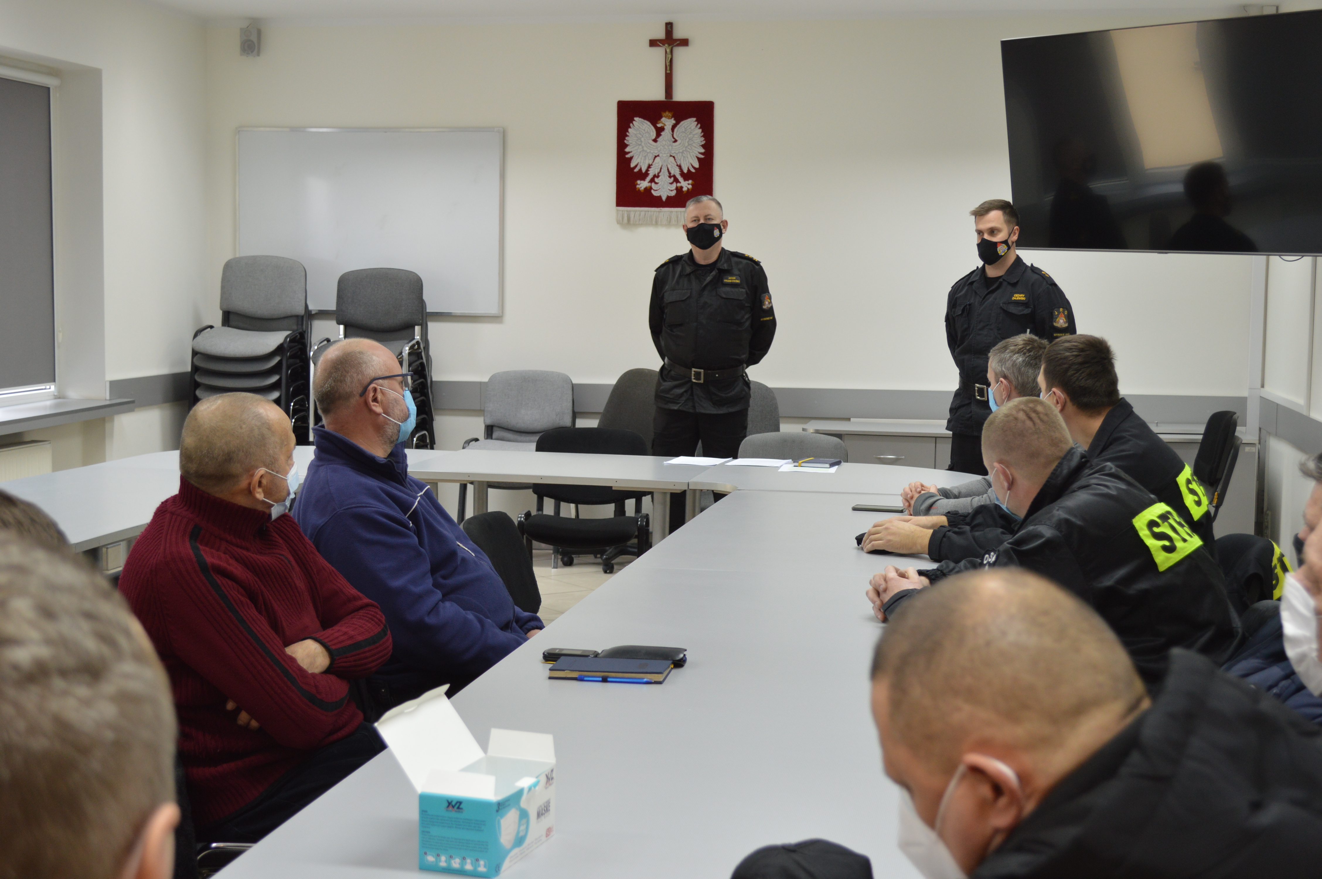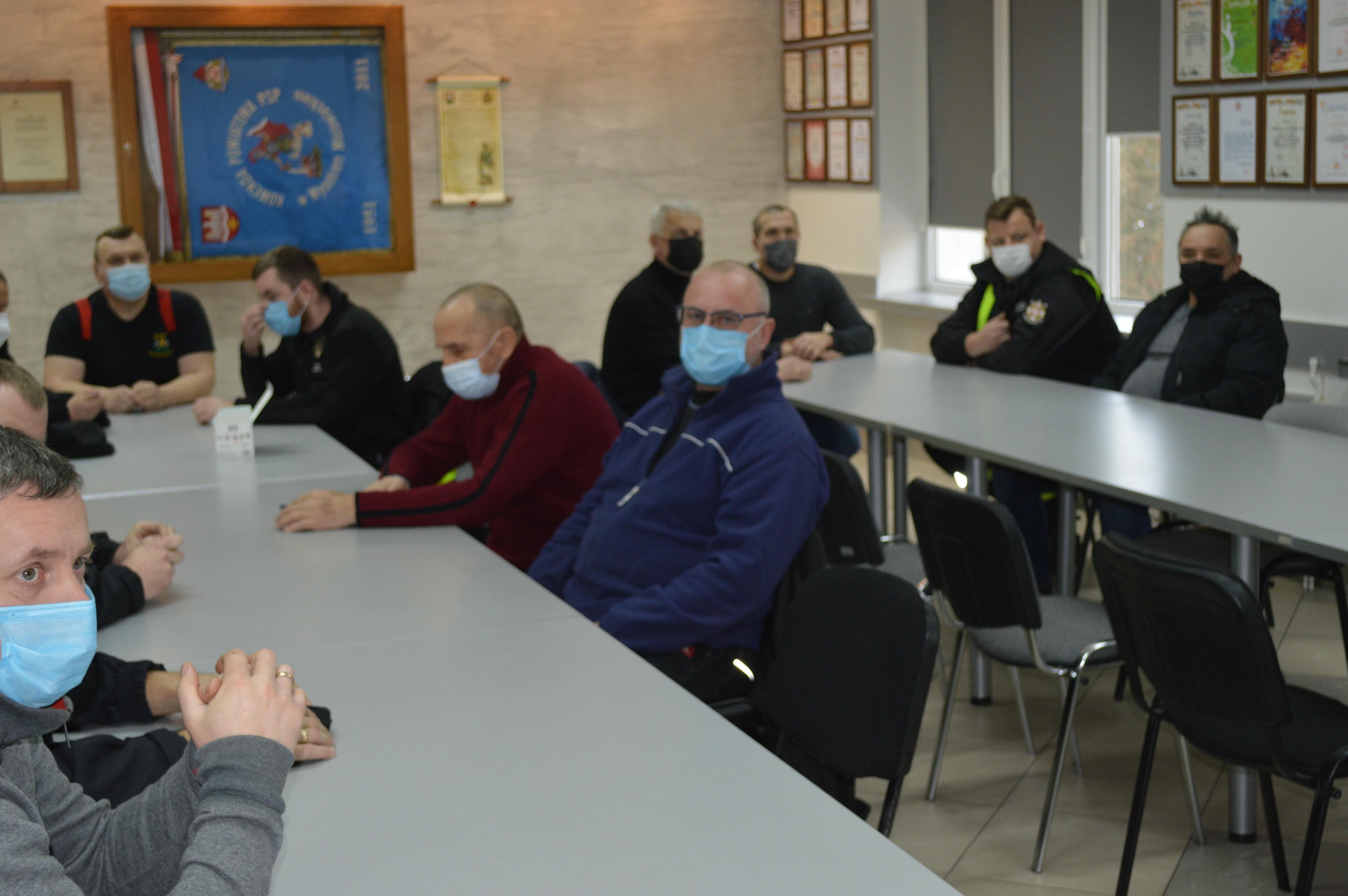 W dniu 09.12.2021 r. w Komendzie Powiatowej PSP w Wysokiem Mazowieckiem odbyło się szkolenie dla przedstawicieli jednostek OSP włączonych do Krajowego Systemu Ratowniczo Gaśniczego z terenu powiatu wysokomazowieckiego. W trakcie szkolenia Zastępca Dowódcy JRG mł. kpt. Cezary Zalewski przypomniał zebranym warunki poruszania się pojazdami uprzywilejowanymi i zasady ruchu drogowego obowiązujące kierujących takimi pojazdami. W dalszej części omówiono zasady bezpieczeństwa w trakcie dojazdu do remizy, dojazdu na miejsce zdarzenia oraz w trakcie prowadzenia działań. Zebranie odbyło się z zachowaniem zasad reżimu sanitarnego.