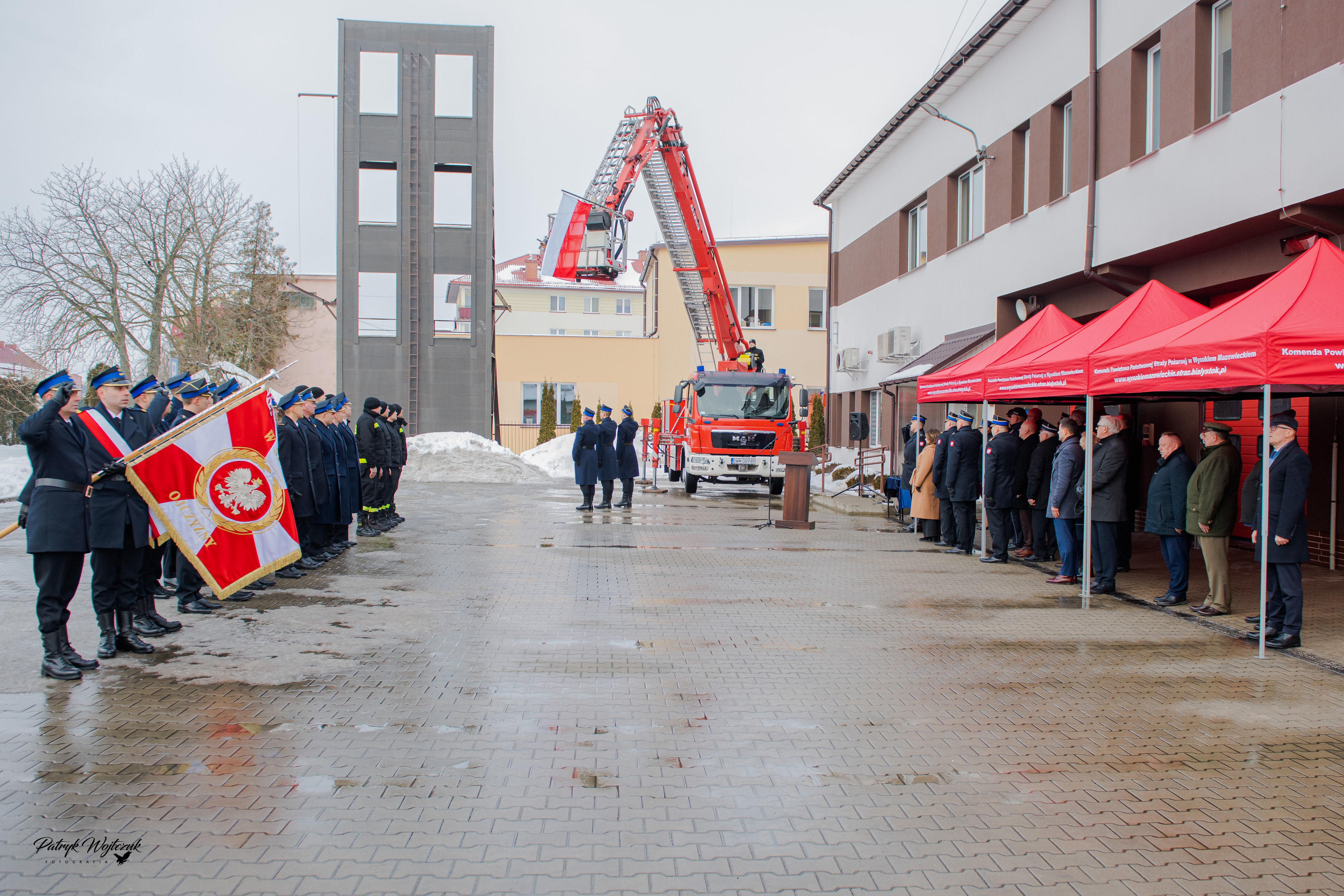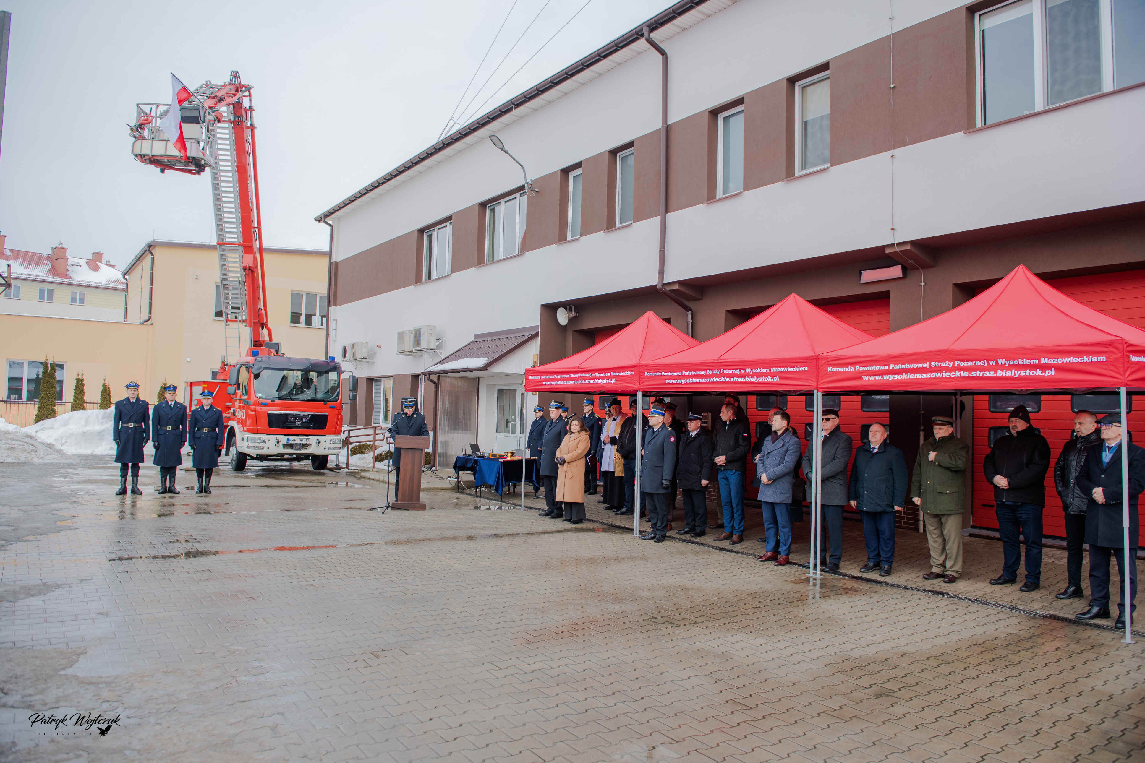 11 lutego 2026 r. na placu wewnętrznym Komendy Powiatowej PSP w Wysokiem Mazowieckiem odbyło się uroczyste włączenie do użytku pojazdów ratowniczo-gaśniczych oraz odprawa roczna podsumowująca działalność jednostek ochrony przeciwpożarowej powiatu wysokomazowieckiego za 2025 rok. W uroczystości oraz naradzie udział wzięli zaproszeni goście, wśród których znaleźli się Pani Anna Bogucka - Senator RP oraz Prezes Zarządu Oddziału Gminnego ZOSP RP w Czyżewie, Pan Michał Gąsowski - wicewojewoda Podlaski, st. bryg. Janusz Kondrat - Podlaski Komendant Wojewódzki PSP, ks. mł. bryg. Wojciech Ejsmont - kapelan wojewódzki strażaków, ks. kan. Edward Łapiński - Proboszcz Parafii pw. św. Apostołów Piotra i Pawła w Wysokiem Mazowieckiem, Pan Bogdan Zieliński - Starostwa Wysokomazowiecki a jednocześnie Prezes Zarządu Oddziału Powiatowego ZOSP RP w Wysokiem Mazowieckiem, przedstawiciele władz samorządowych szczebla gminnego, przedstawiciele służb współdziałających oraz funkcjonariusze Komendy Powiatowej PSP w Wysokiem Mazowieckiem.