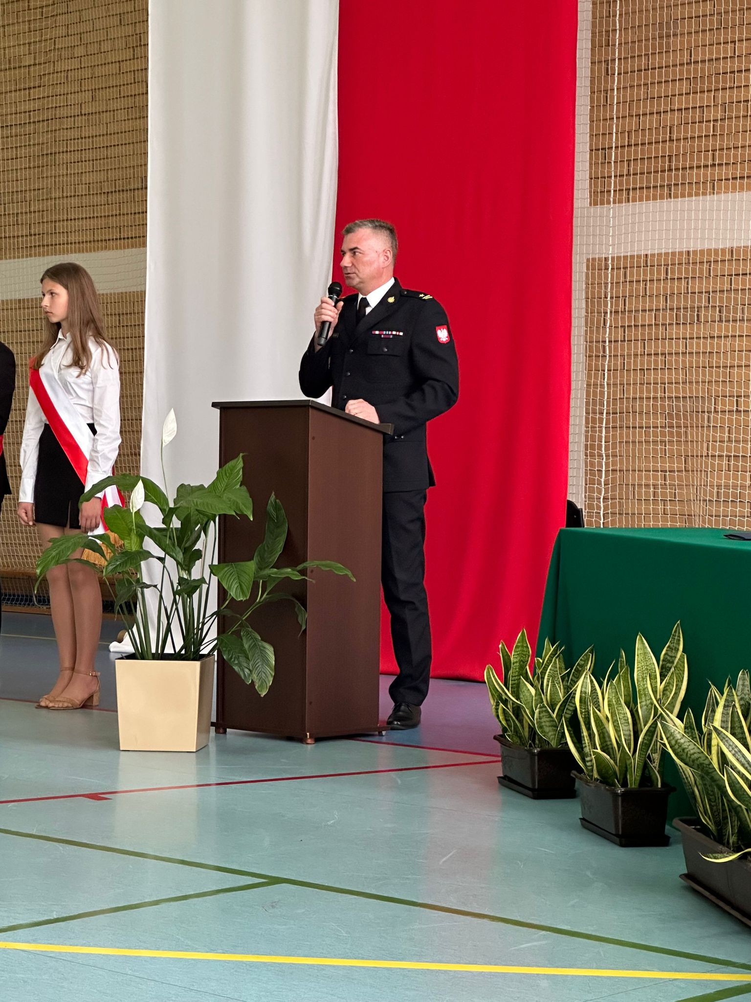 Komendant Powiatowy Państwowej Straży Pożarnej w Wysokiem Mazowieckiem mł. bryg. Wojciech Sokołowski wziął udział w uroczystym zakończeniu roku szkolnego w Szkole Podstawowej im. Kardynała Stefana Wyszyńskiego w Szepietowie. Podczas uroczystości wręczony został dyplom Komendanta Głównego PSP dla Wiktorii Wasilewskiej za zajęcie III miejsca w ogólopolskim konkursie kalendarzowym Państwowej Straży Pożarnej "Straż pożarna w walce z żywiołami". Konkurs skierowany był do dzieci i młodzieży ze szkół podstawowych.