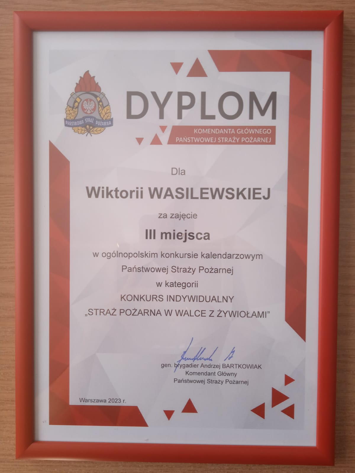 Wręczenie Dyplomu Komendanta Głównego PSP za III miejsce w Konkursie Kalendarzowym