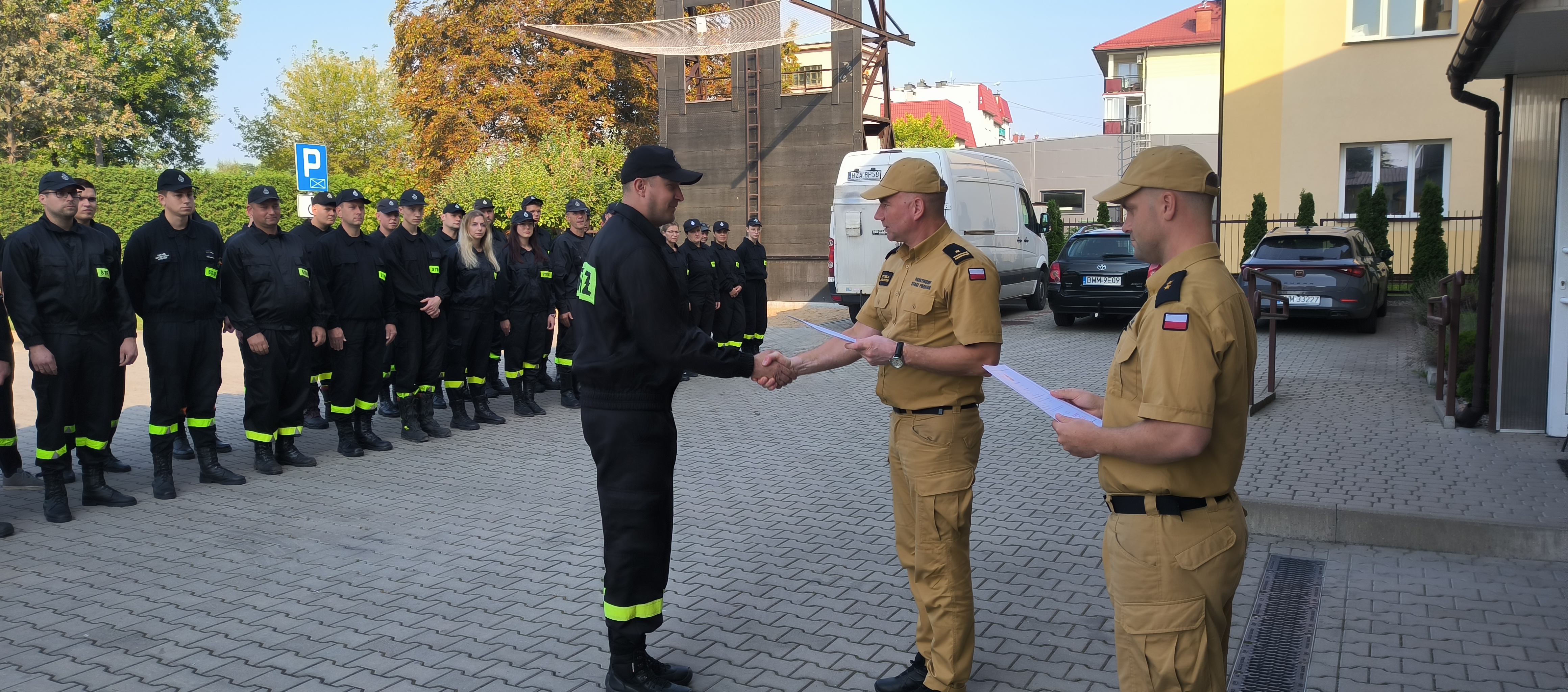 13 września 2023 r. na placu Komendy Powiatowej Państwowej Straży Pożarnej w Wysokiem Mazowieckiem odbyło się wręczenie zaświadczeń o ukończeniu Szkolenia Podstawowego oraz szkolenia Naczelników Ochotniczych Straży Pożarnych.