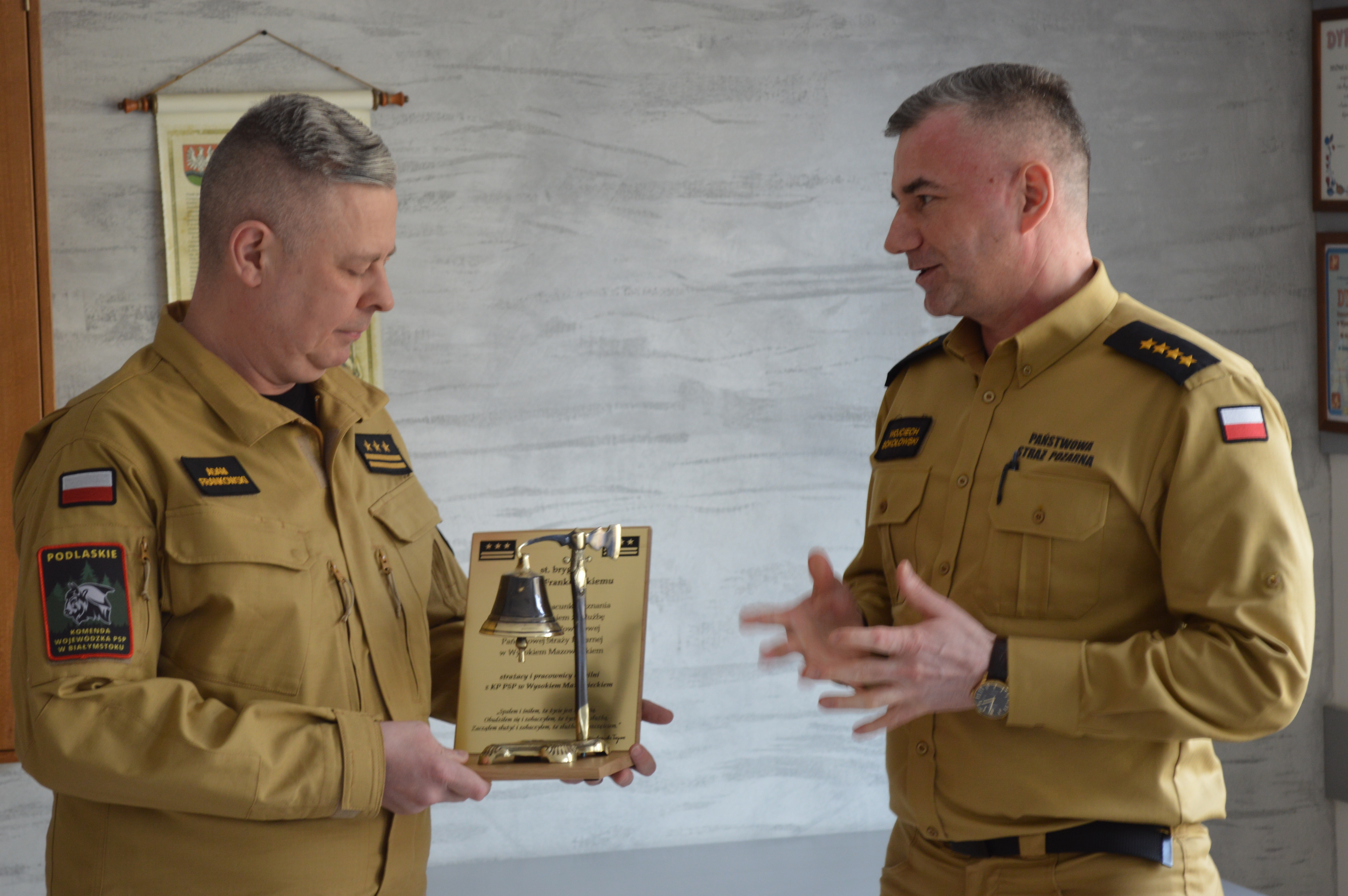 W podziękowaniu za długoletnią służbę w KP PSP w Wysokiem Mazowieckiem załoga Komendy wręczyła st. bryg. Adamowi Frankowskiemu pamiątkowy dzwon.